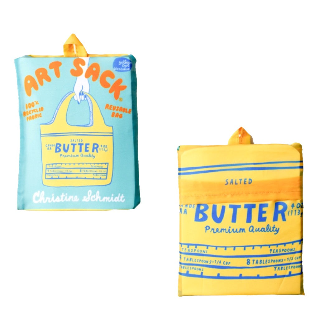 Turn errands into exhibitions with this playful butter art sack inspired by classic butter packaging and kitchen nostalgia. A reusable tote that folds into itself and brings big butter energy to everyday hauling.