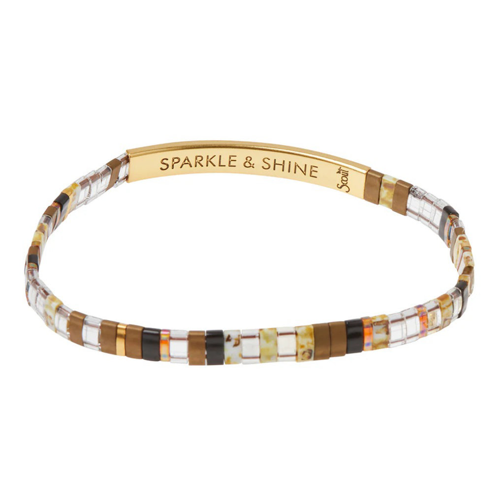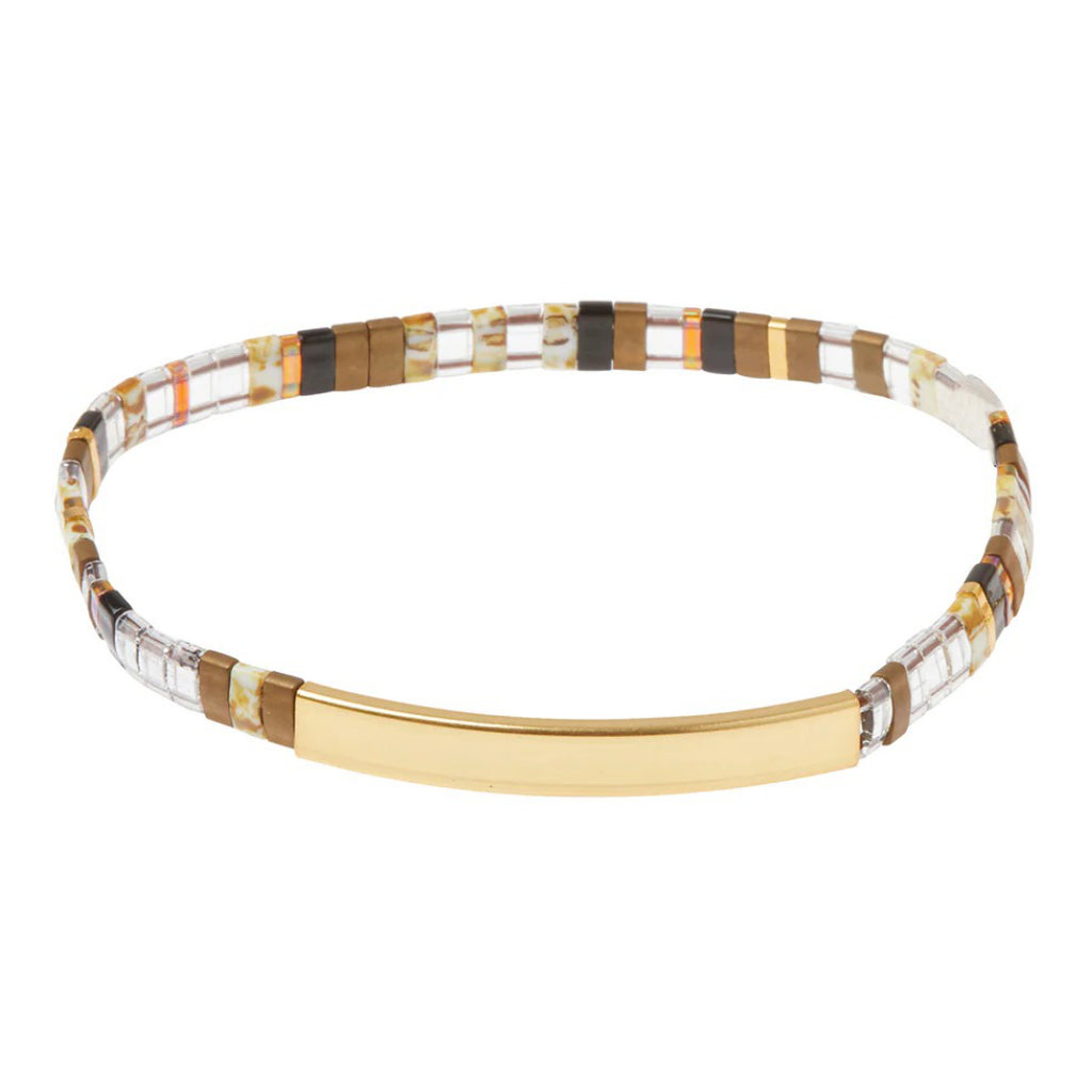 Add a little glow to your day with the Good Karma Bracelet Sparkle & Shine Gold. Shimmering Japanese glass Miyuki beads and a sleek gold bar make this an easy, everyday reminder to shine bright.