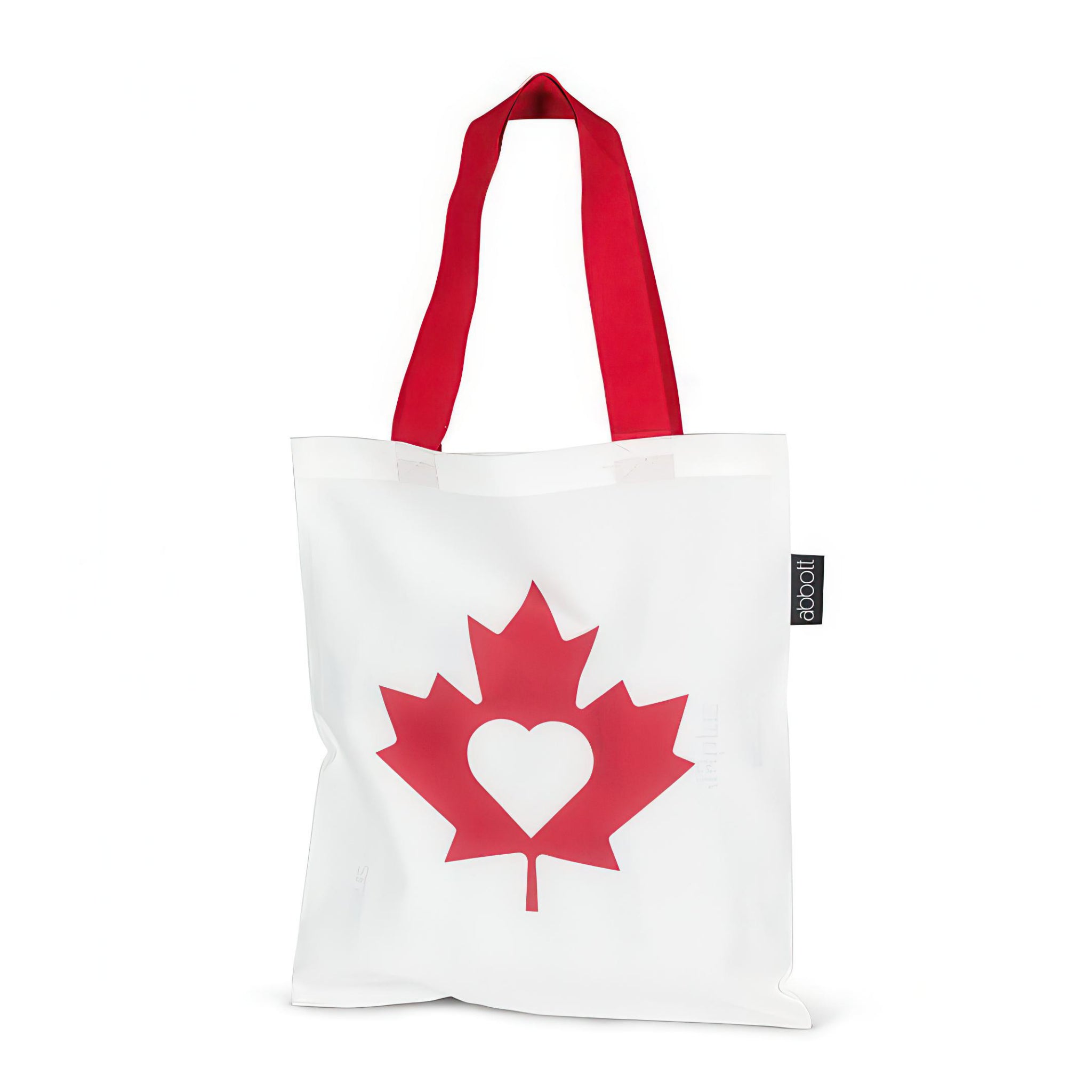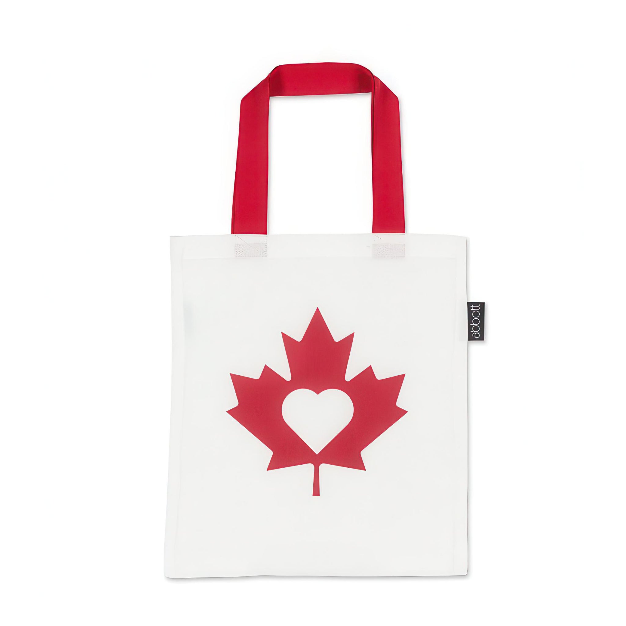 This cotton tote bag features a maple leaf with a heart cutout for an easy pop of Canadian pride. Durable and roomy, it’s ready for errands, markets, and everyday carry.