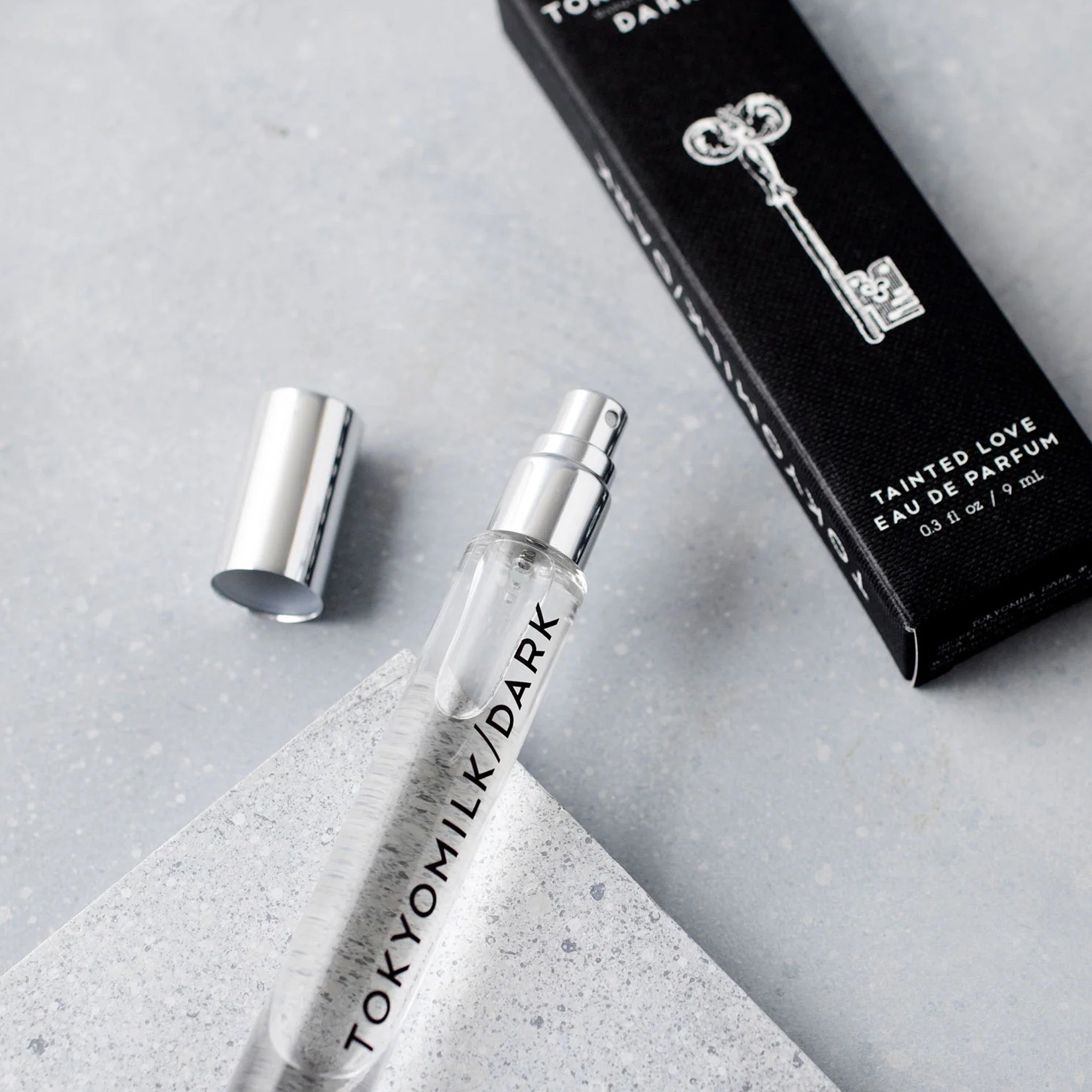 Not for the faint of heart. Tainted Love Travel Eau de Parfum is a warm, provocative blend sparked by the complexities of love. Dark vanilla bean and sensuous sandalwood mingle with sweet orchid and white tea for a fragrance that feels daring, romantic, and a little dangerous.