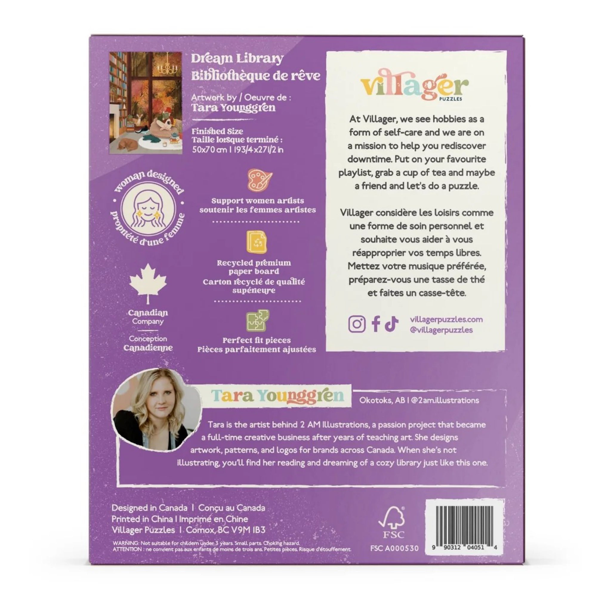 Step into book lover bliss with the Dream Library Puzzle, a cozy scene imagined by Alberta artist Tara Younggren of 2AM Illustrations. Winner of Villager’s 2024 art competition, this design captures the magic of reading, cozy spaces, and a dreamy view in every piece.