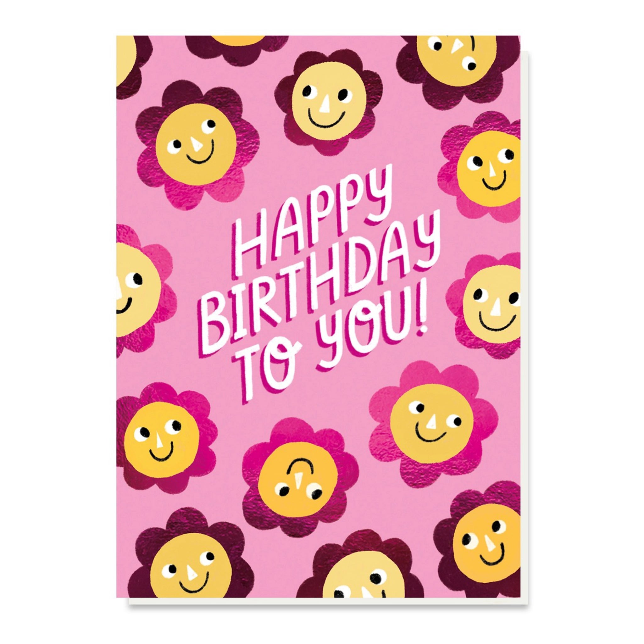 Flower Faces Birthday Card blooms with charm, featuring happy floral faces and shiny foil details to bring joy to every birthday.