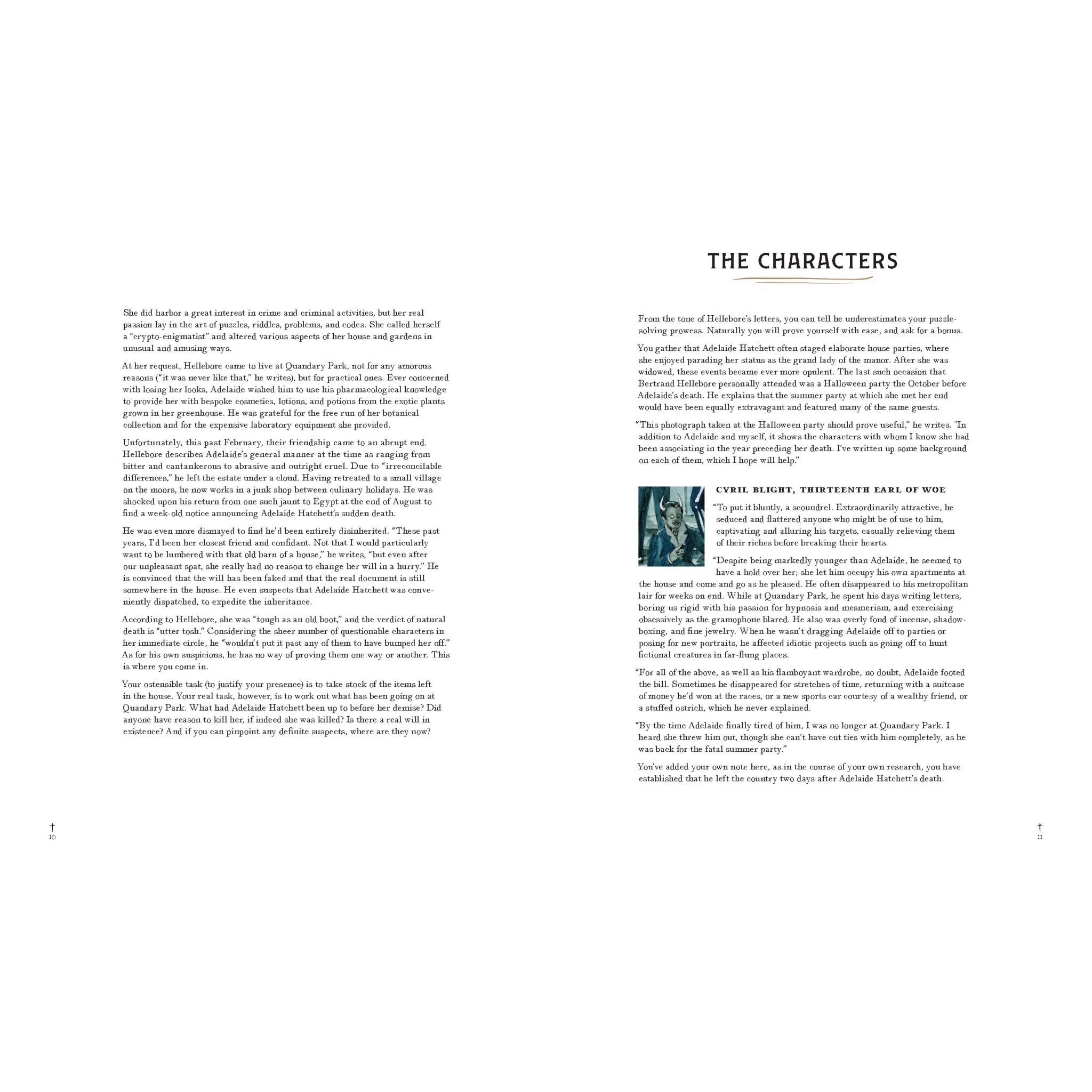 The game is afoot in this beautifully illustrated puzzle book packed with intrigue, clues, and dark humour. Set on the mysterious Quandary Park estate, readers take on the role of detective to solve the shocking death of Adelaide Hatchett, heiress of Hatchett’s Biscuits & Wafers. Each logic puzzle unravels new secrets and eccentric suspects, from scandalous artists to scheming botanists.