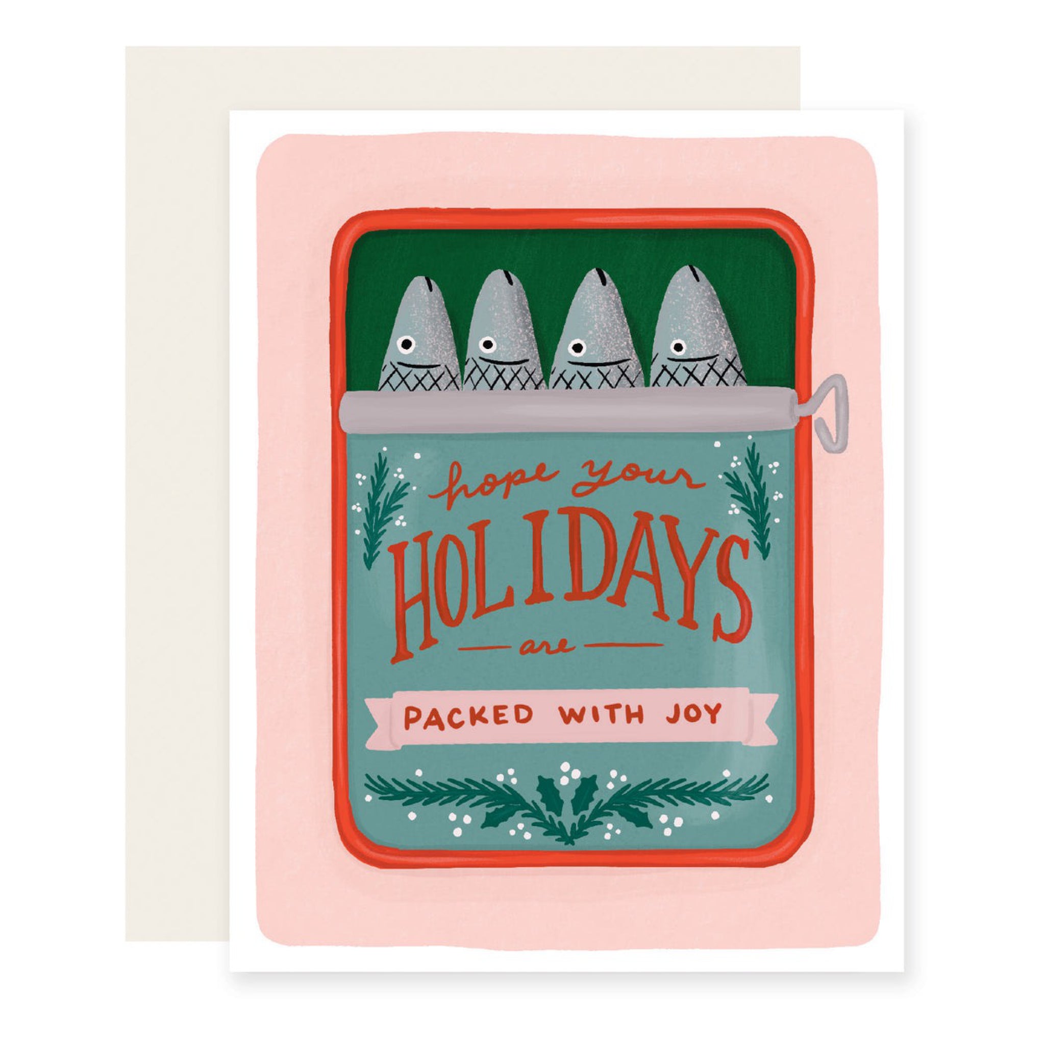 Tinned Fish Holiday card with a quirky design packed with joy, perfect for sending playful Christmas cheer and festive fun.