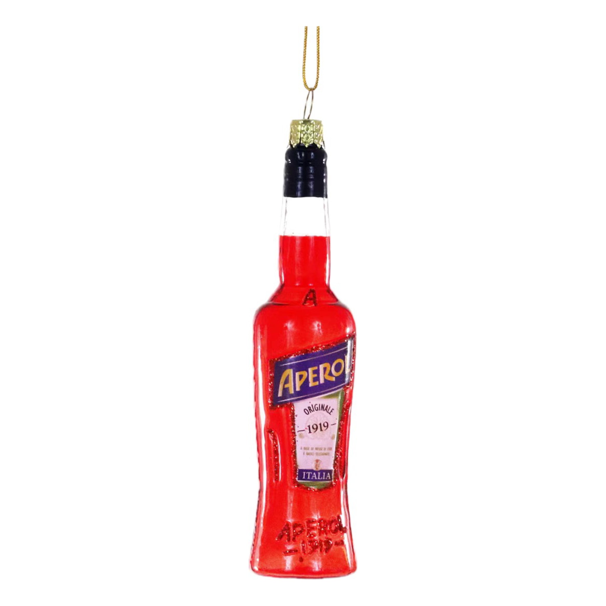 A glass ornament shaped like a classic Aperol bottle, ready to bring a splash of aperitivo hour to the tree. Bright, bold, and a little bit cheeky, it is perfect for cocktail lovers.