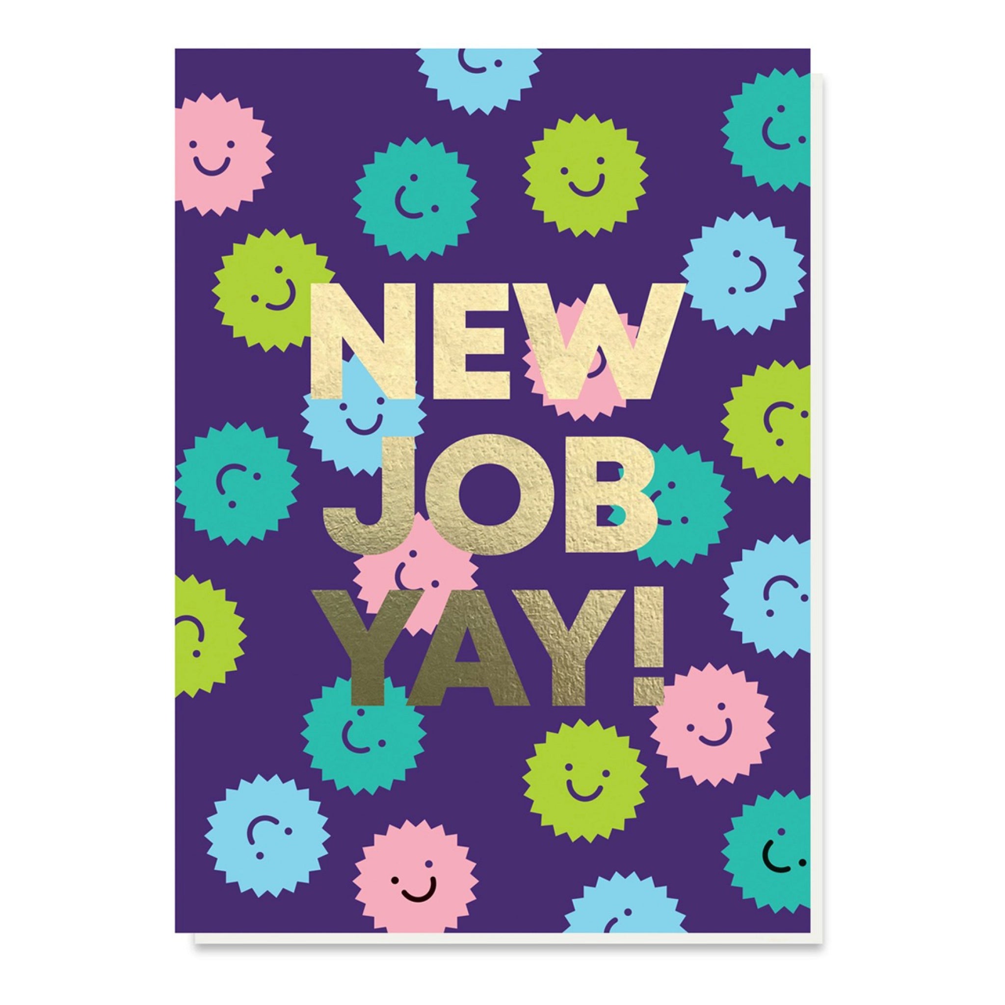 Celebrate success with the Smiley Faces New Job Card, a fun gold foil design that’s perfect for sending cheerful congratulations.