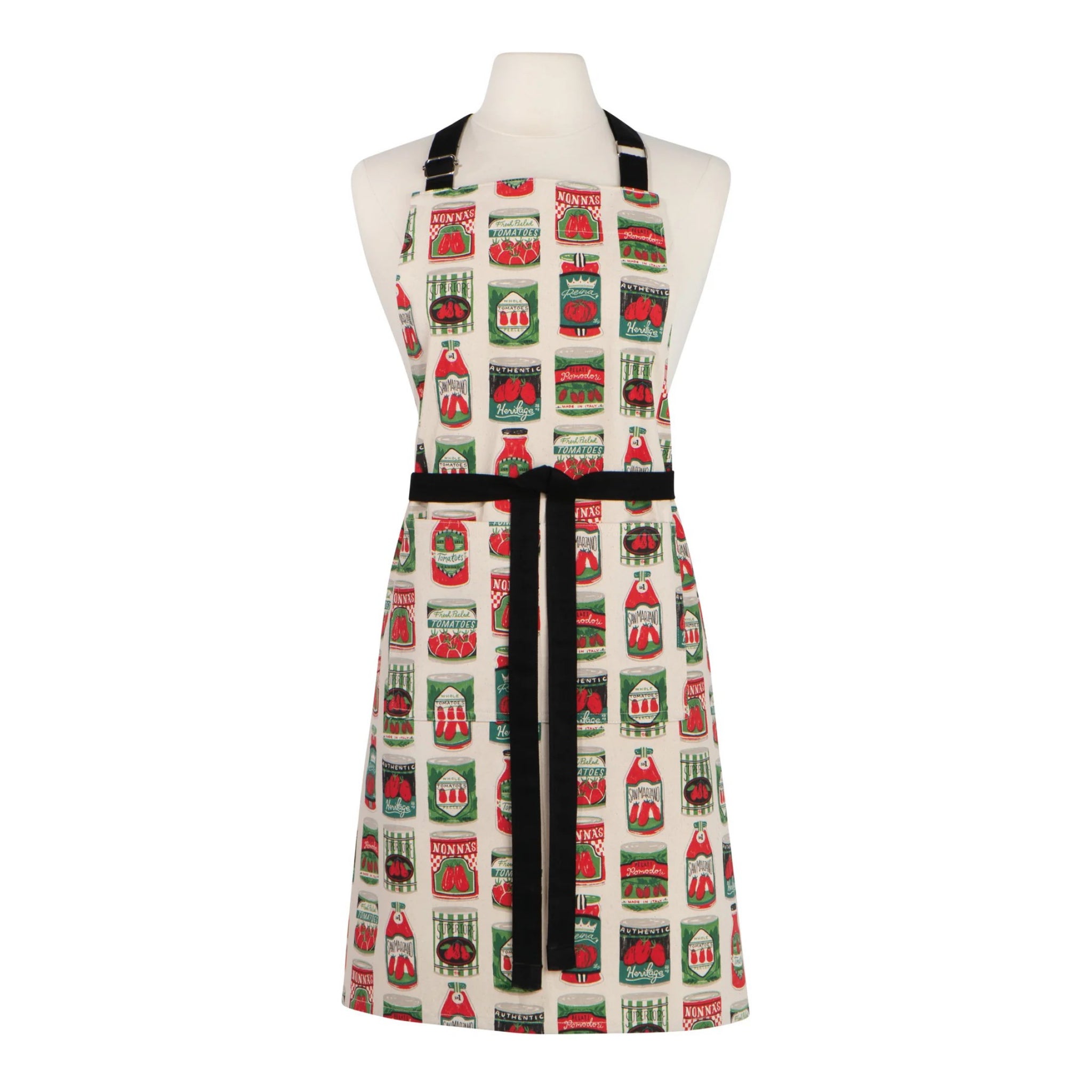 This Pomodori chef apron blends classic design with thoughtful details. An adjustable neck strap and extra long waist ties create a comfortable fit, while hand drawn tomatoes, rustic labels, and red and green patterns add playful vintage market charm inspired by old world kitchens.