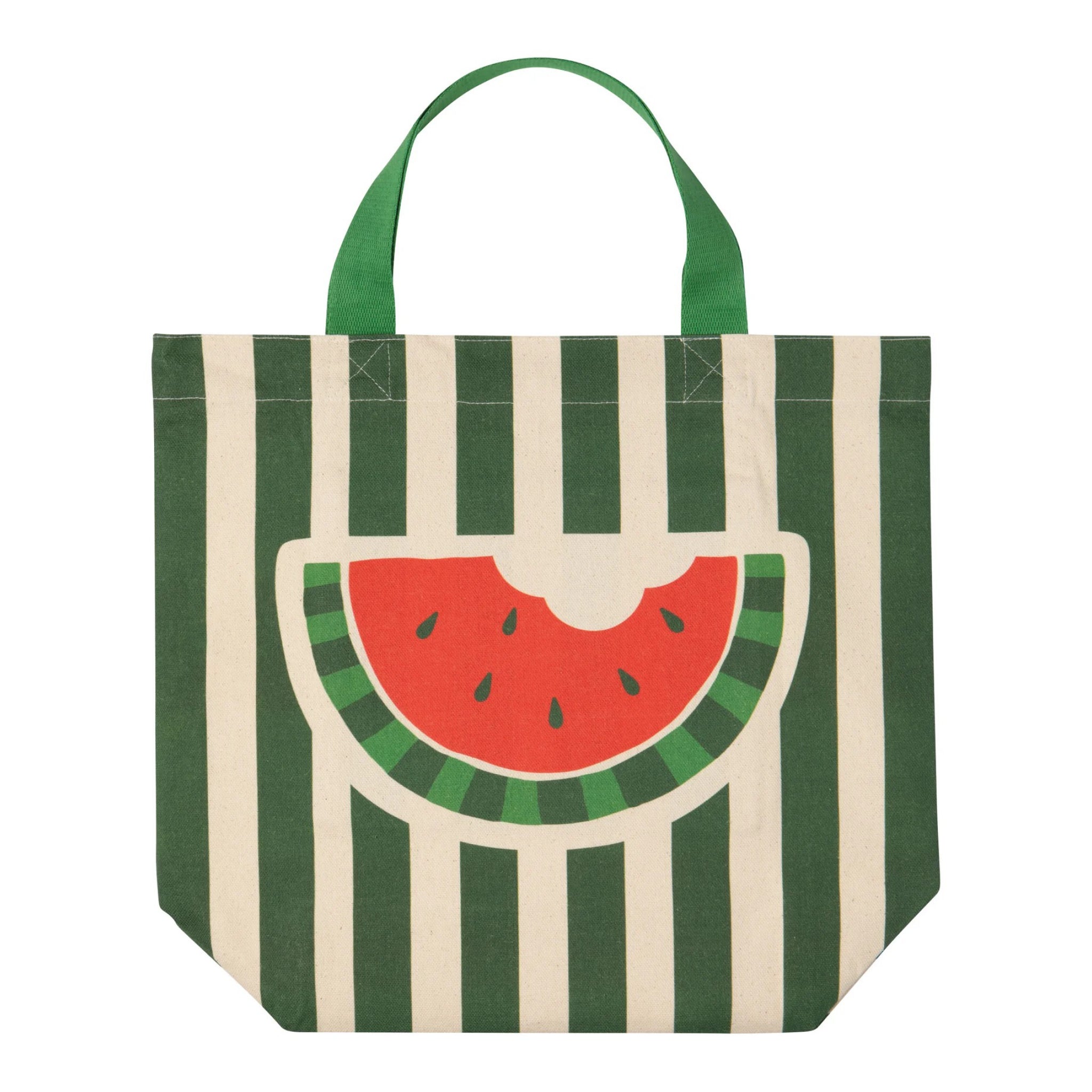 This Melon Pop pocket tote is a lightweight cotton canvas bag made for quick grocery runs and daily errands. It folds neatly into its own pocket for easy carrying, while bright watermelon details add juicy summer fun.