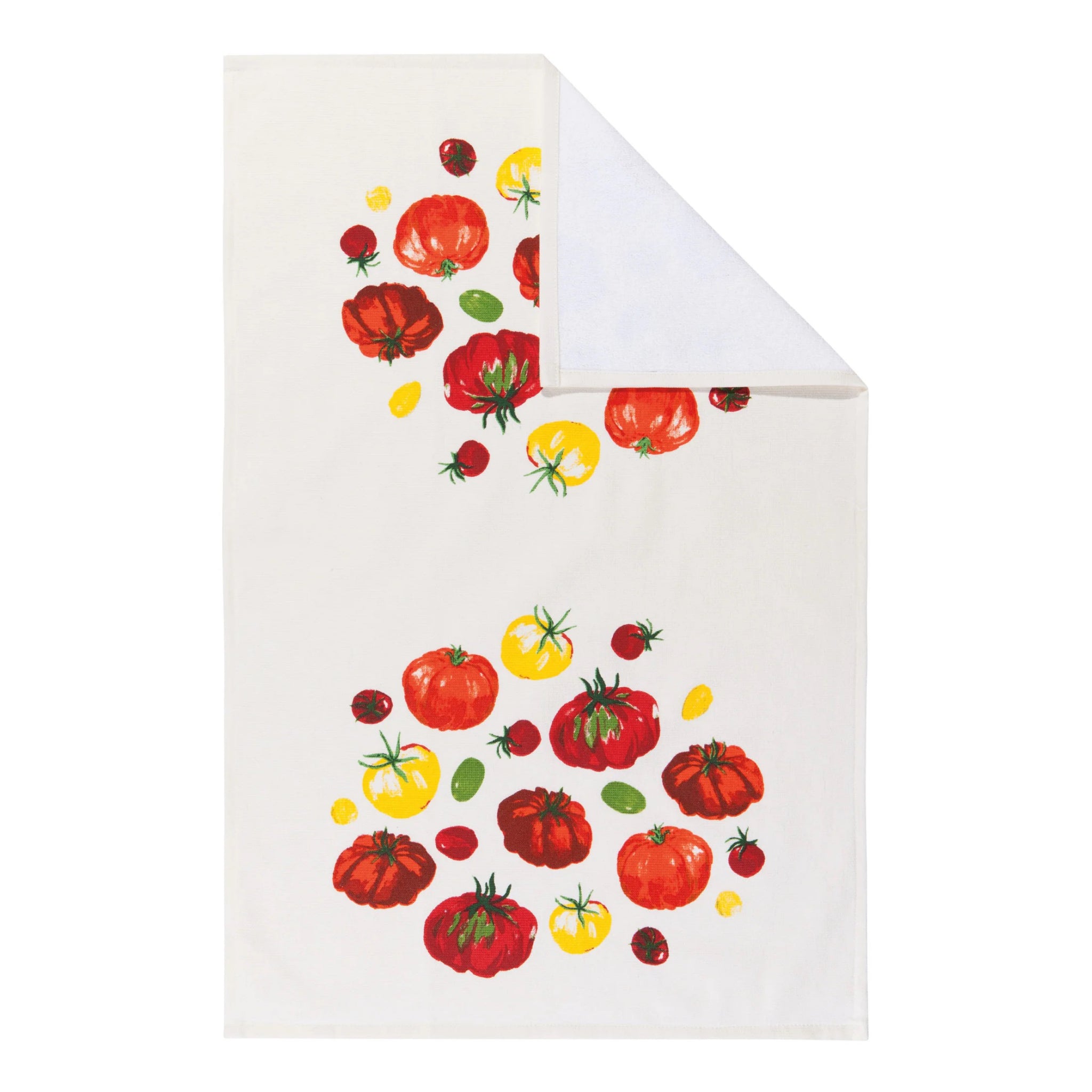 Add garden-fresh charm to your cleanup routine! This soft terry cotton towel bursts with juicy heirloom tomato prints, making every dish-drying moment feel like a farmers' market find.
