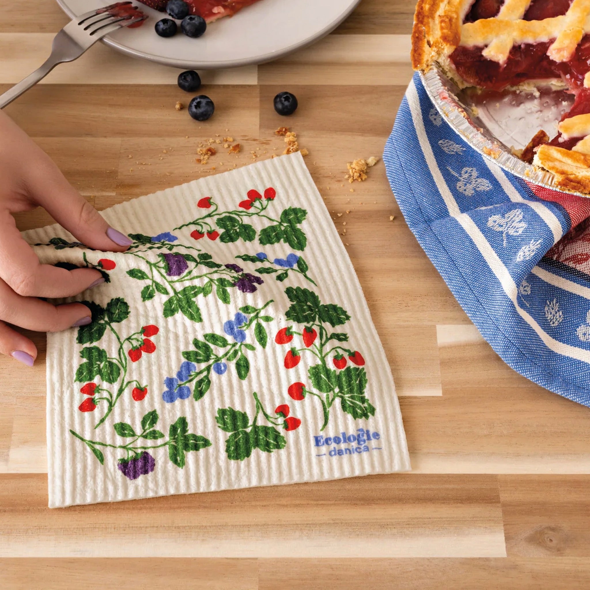 This Berry Bramble Swedish dishcloth handles spills big or small with super absorbent, reusable style. Compostable cellulose cloths replace sponges and paper towels with ease.