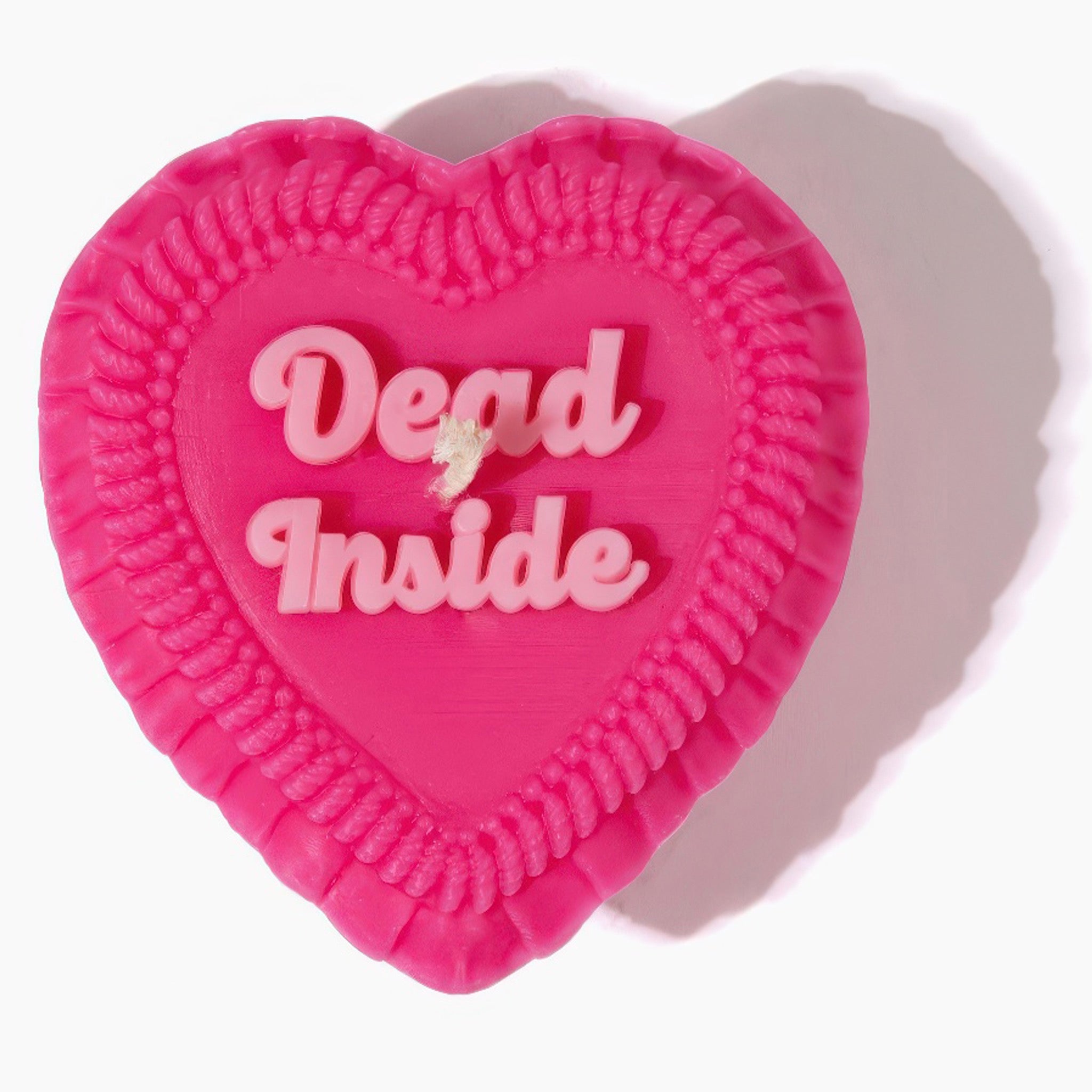 Dead Inside Heart Candle: This over-the-top cutie looks like a vintage heart-shaped cake, complete with piped frosting vibes and a hilariously honest message. Hand-poured in a custom mould you won’t find anywhere else, it’s big, unscented and made to stand out. Comes in a gift-ready box that’s just as charming as the candle itself.