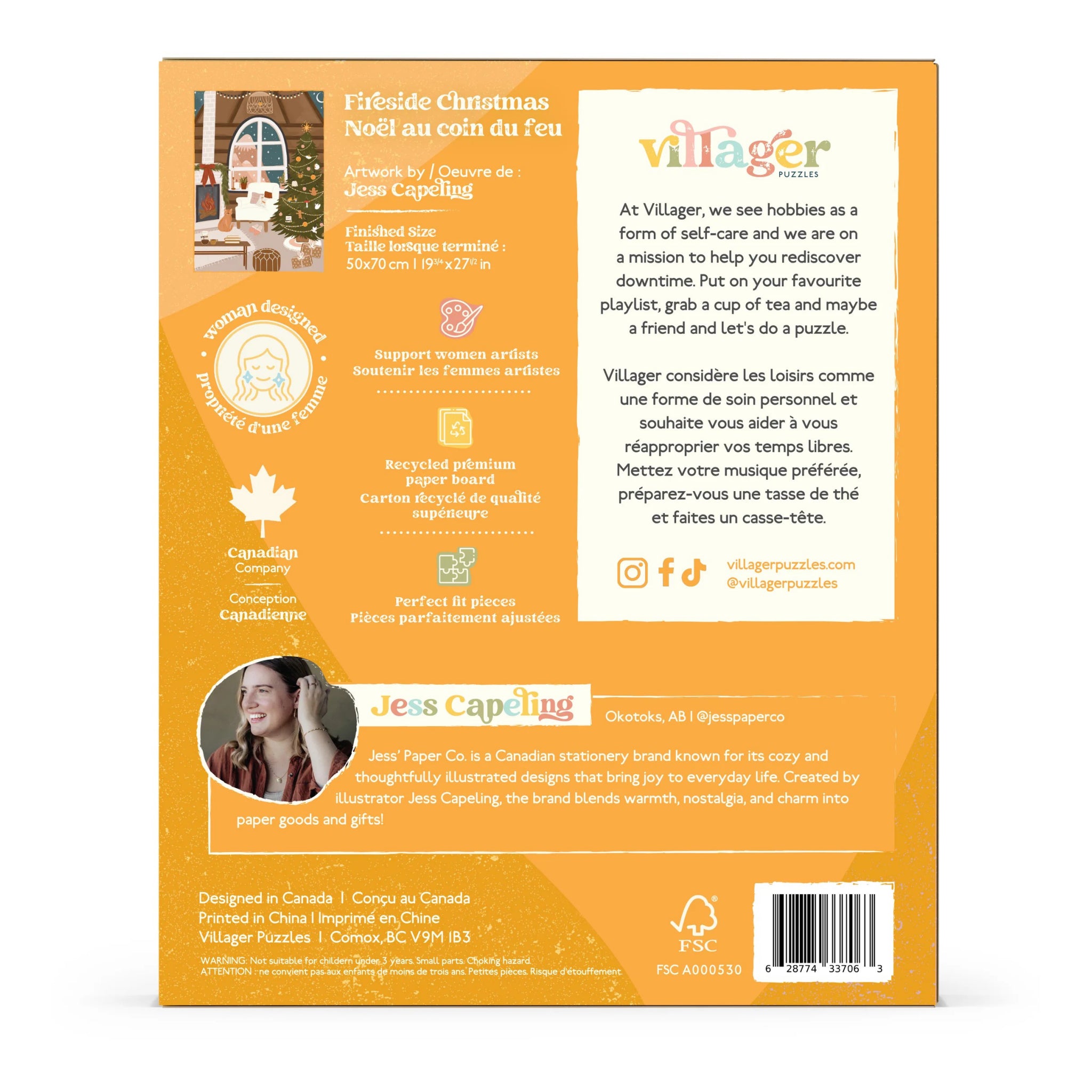 Curl up in a cozy corner and bring this warm winter scene to life. Illustrated by Alberta artist Jess Capeling of Jess’ Paper Co., this puzzle captures the peaceful magic of the holidays: a wood-paneled cabin, a crackling fireplace, and a beautifully decorated Christmas tree. Whether you’re puzzling solo or with loved ones, it’s the perfect way to slow down and savour the season.