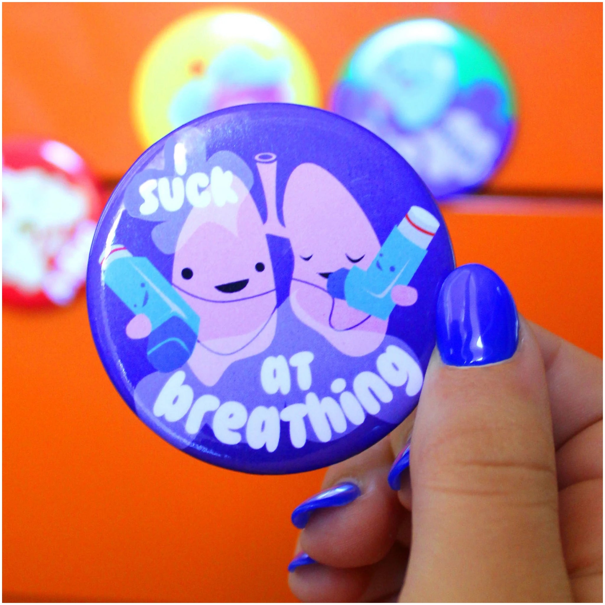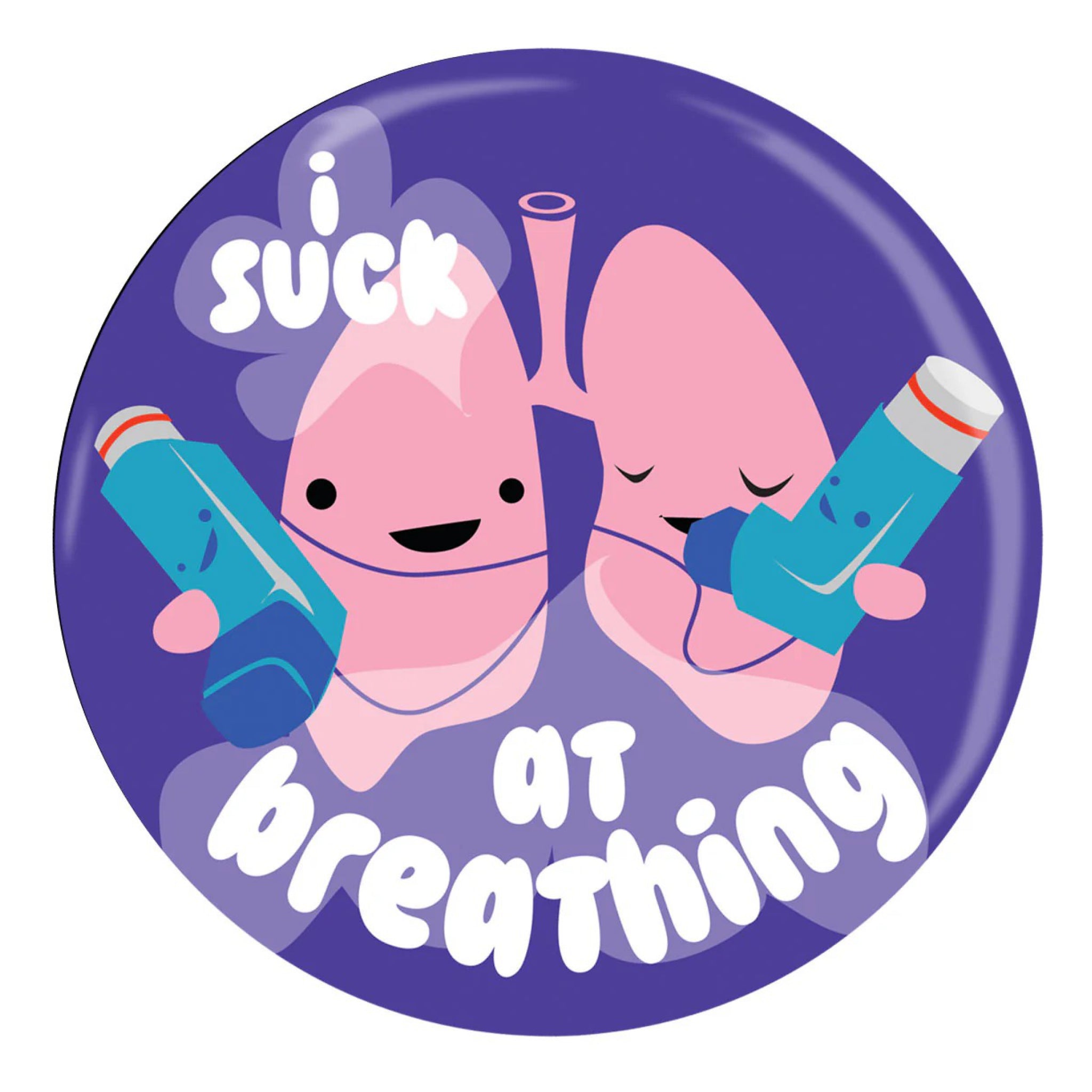 This cute I Suck At Breathing magnet features a lovable lung character with a salty sense of humour, making it a funny asthma gift or lung health pick for fridges, lockers and file cabinets. A cheeky way to laugh through tough days, it’s a hit with asthma warriors, lung transplant patients and anyone who appreciates dark medical humour.