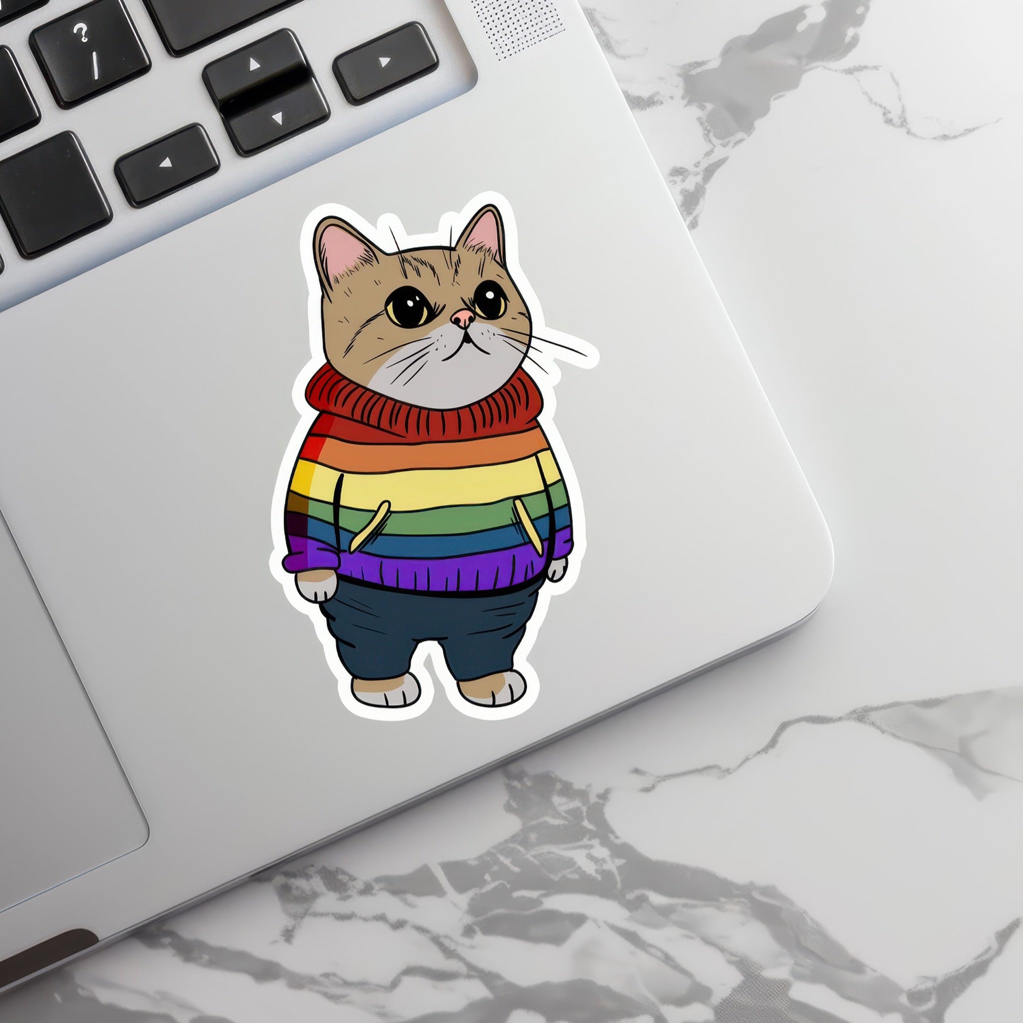 Proud, cozy, and a little bit purrfect. This rainbow cat vinyl sticker adds colorful charm to laptops, water bottles, planners, and more with durable, weatherproof quality made for everyday self expression.