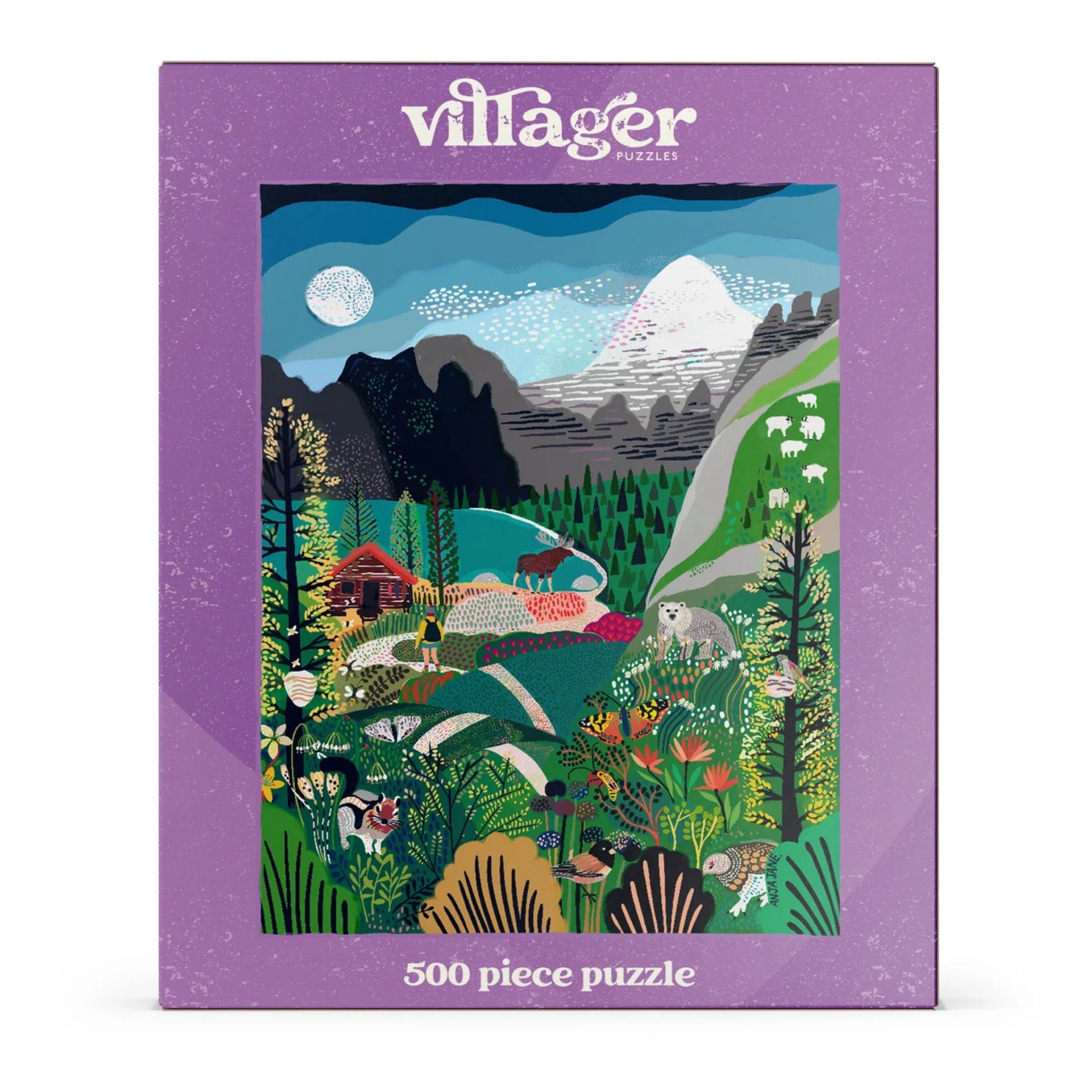 Discover alpine beauty with the Rockies Explorer Puzzle, featuring wildflowers, wildlife, mountain vistas, and a cozy lakeside log cabin. Illustrated by BC artist Anja Jane, this scenic design captures the magic of hiking through the Rockies in every piece.
