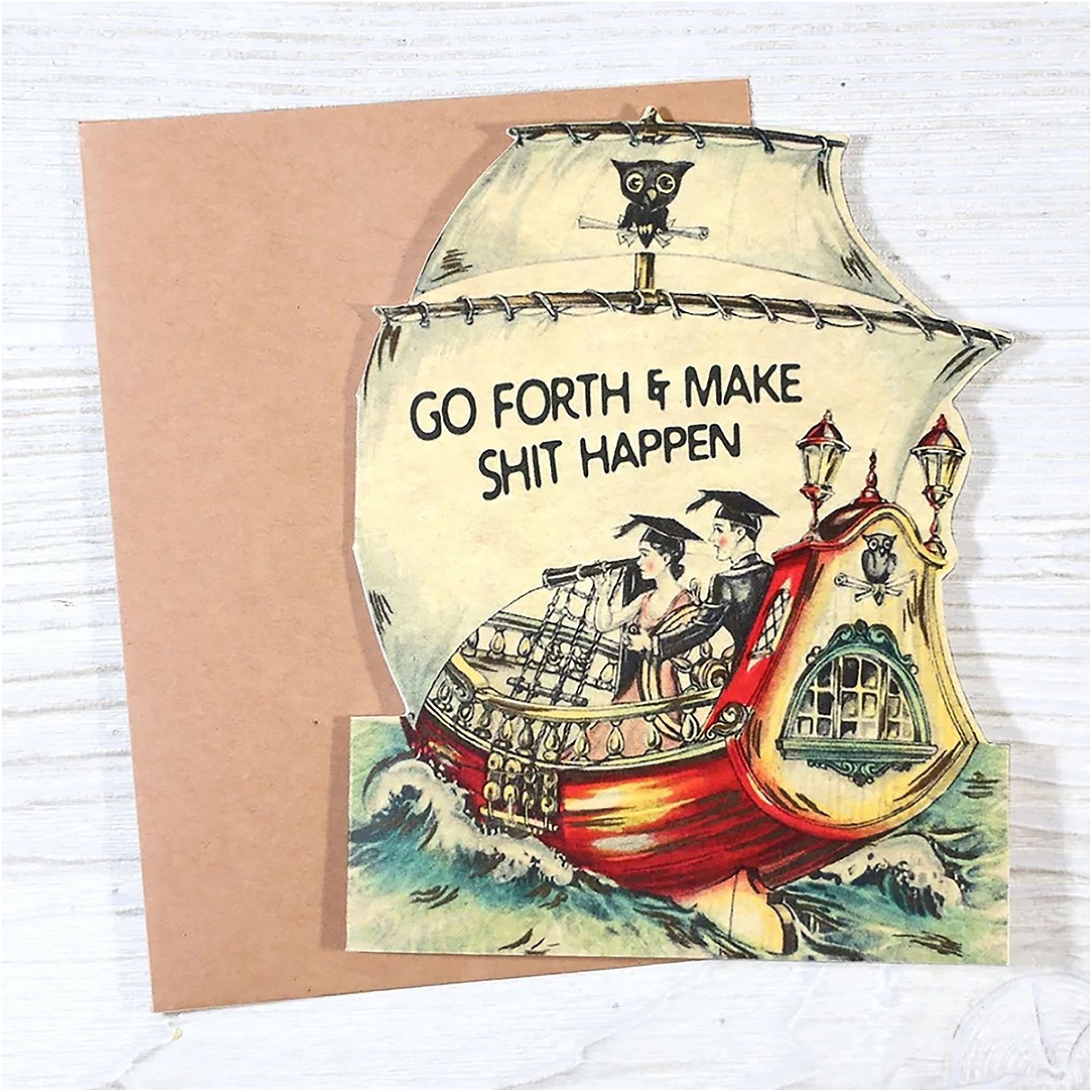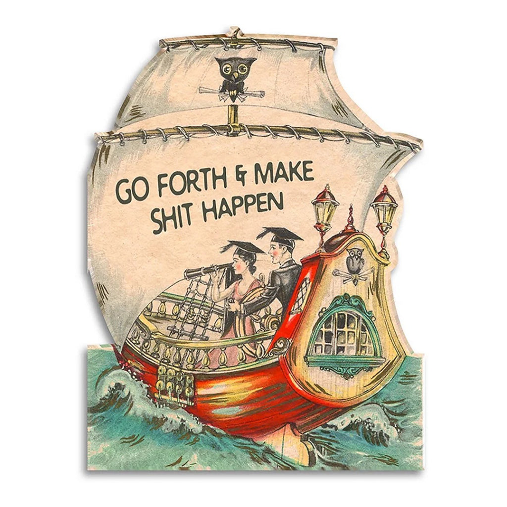 This vintage inspired graduation card delivers the perfect send off: go forth and make shit happen. A funny, encouraging pick for new grads and anyone starting a fresh chapter.