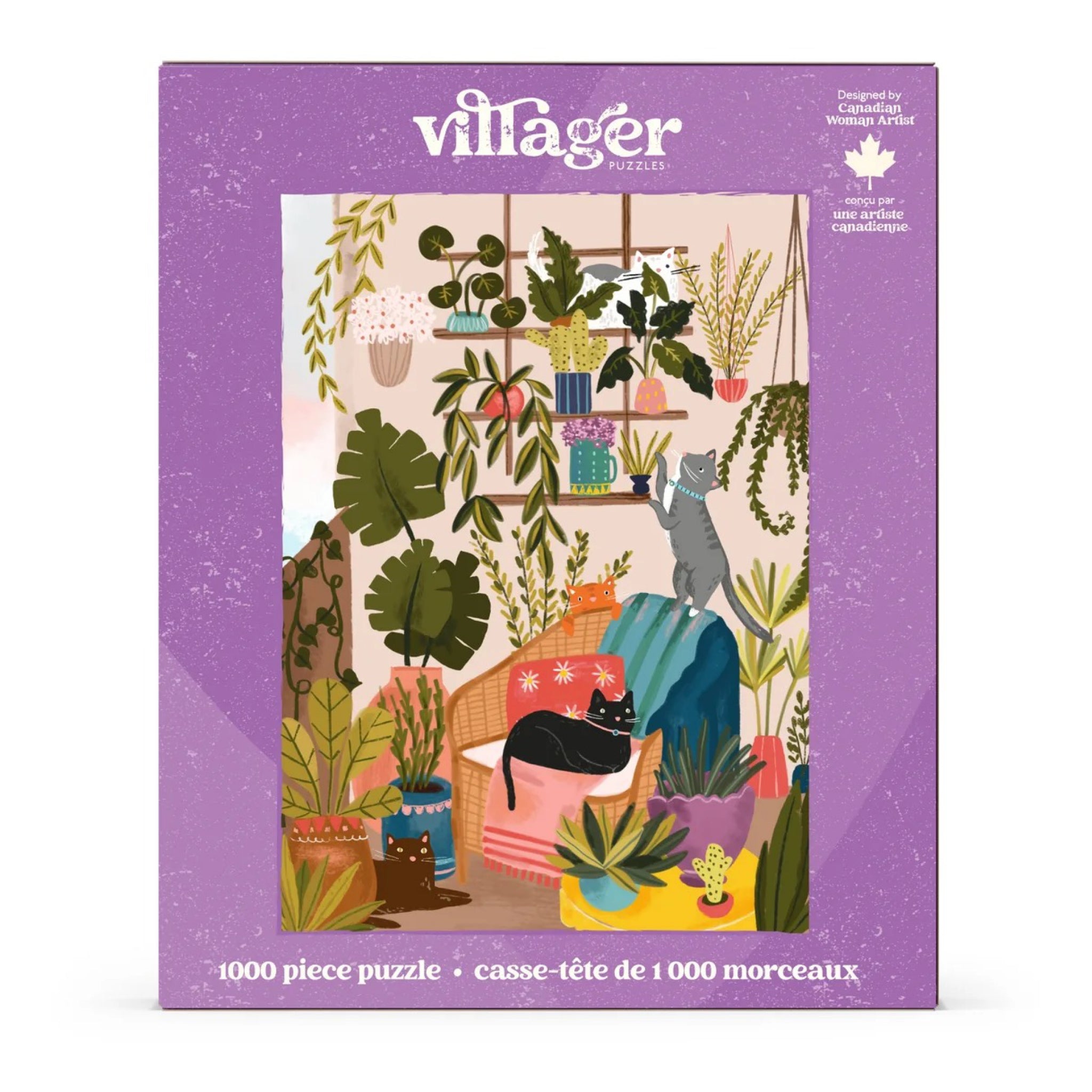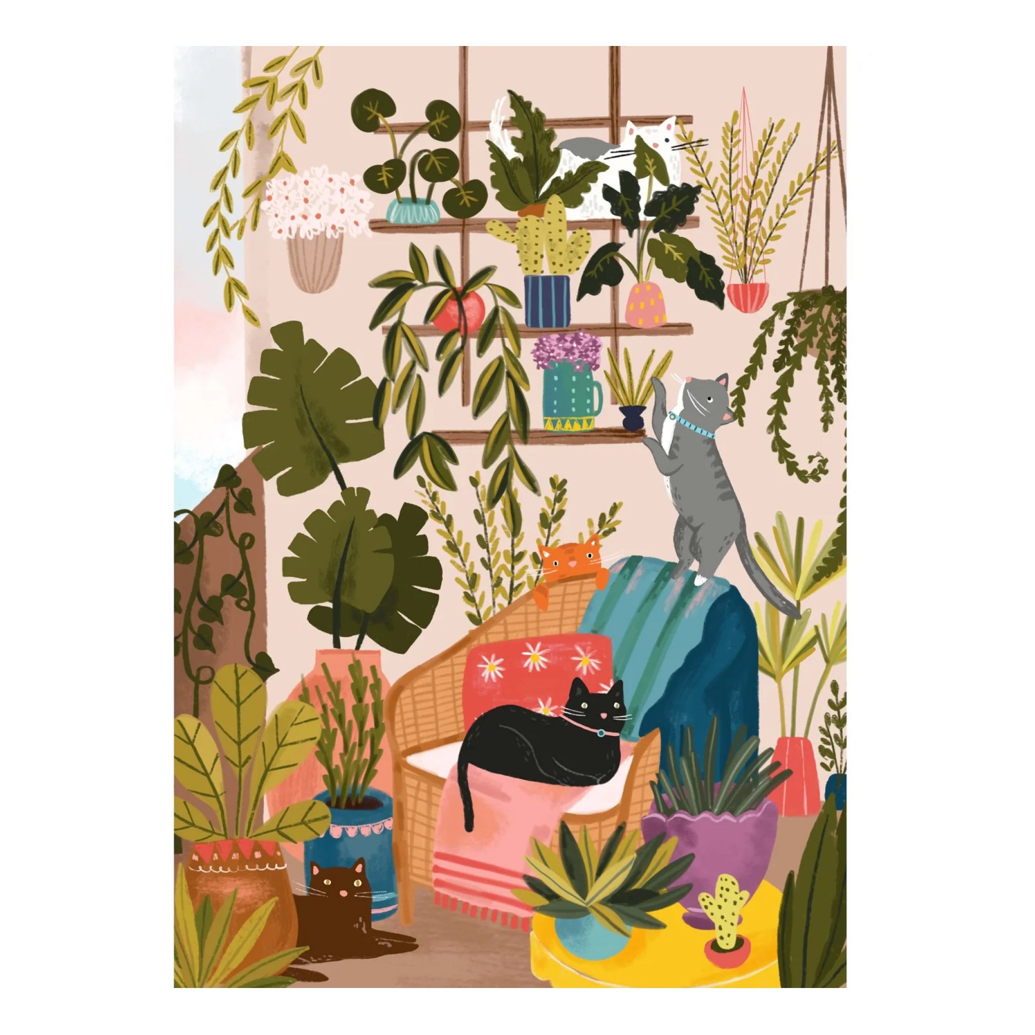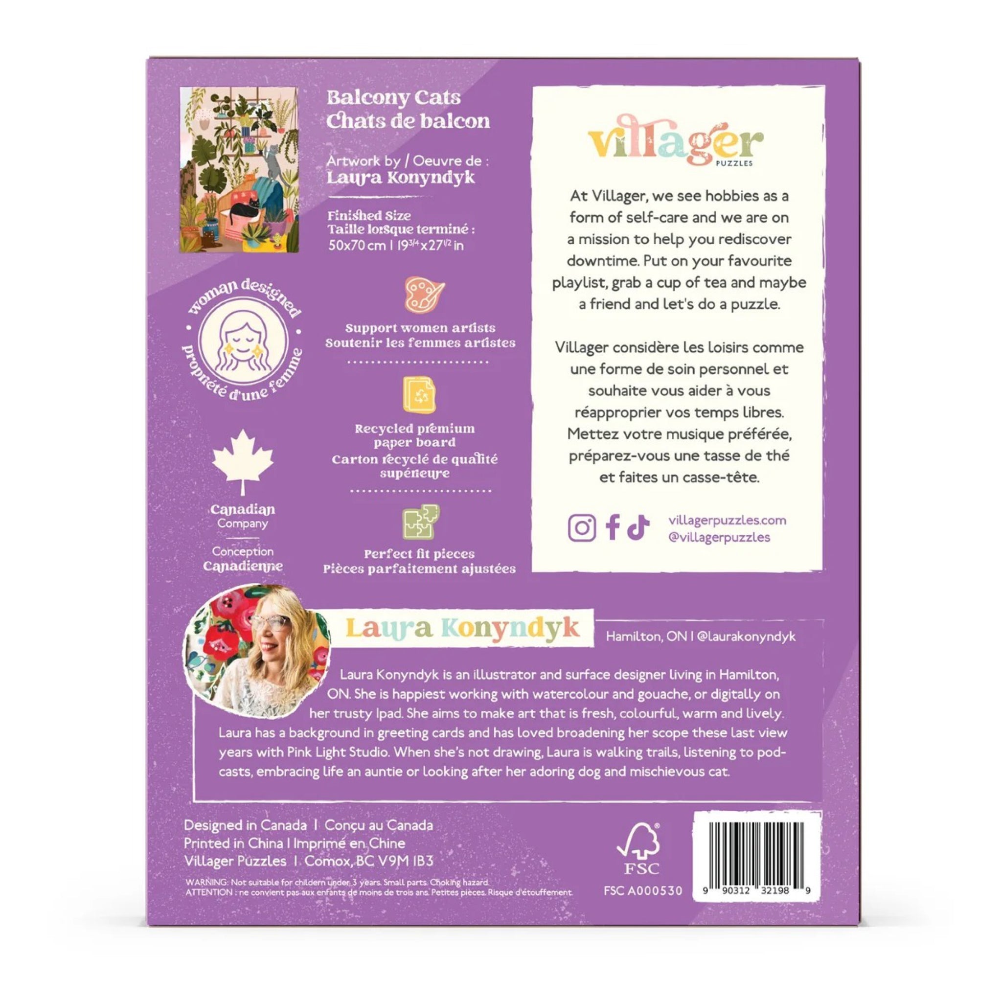 Enjoy the playful charm of the Balcony Cats Puzzle, featuring curious felines lounging among plants in a cozy outdoor scene by artist Laura Konyndyk. Perfect for cat lovers, this whimsical puzzle captures feline mischief, greenery, and sunshine in every piece.
