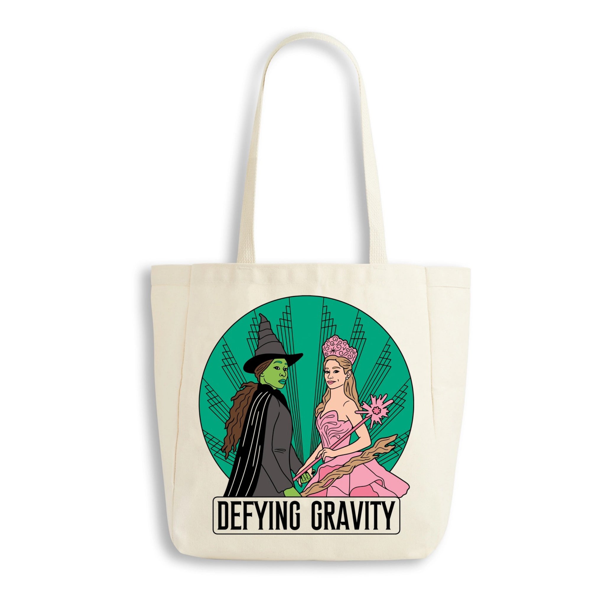 Wicked Defying Gravity tote bag with bold Broadway flair, iconic witchy style, and a magical design perfect for carrying a little drama anywhere.