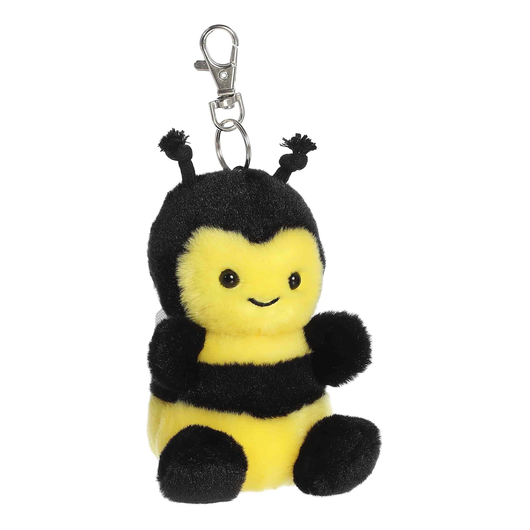 Queeny Bee is a bright little bag buddy with fuzzy stripes and a sweet, confident smile. Clip this soft plush pal onto backpacks, purses, or keys for a pop of sunshine wherever you go.