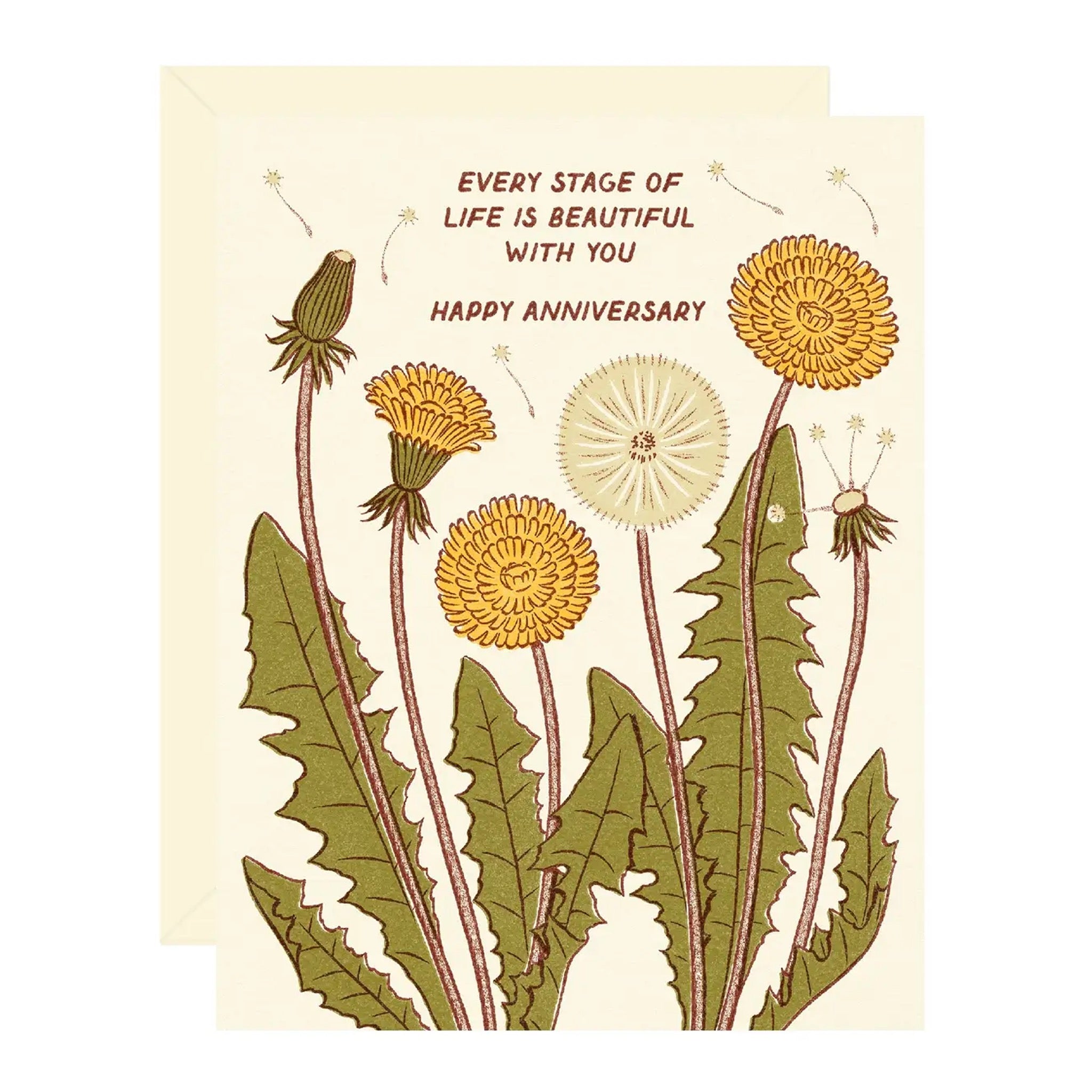 This anniversary card features dandelions in bloom and a sweet reminder that every stage of life is beautiful with you. A simple, thoughtful way to celebrate love that keeps growing.