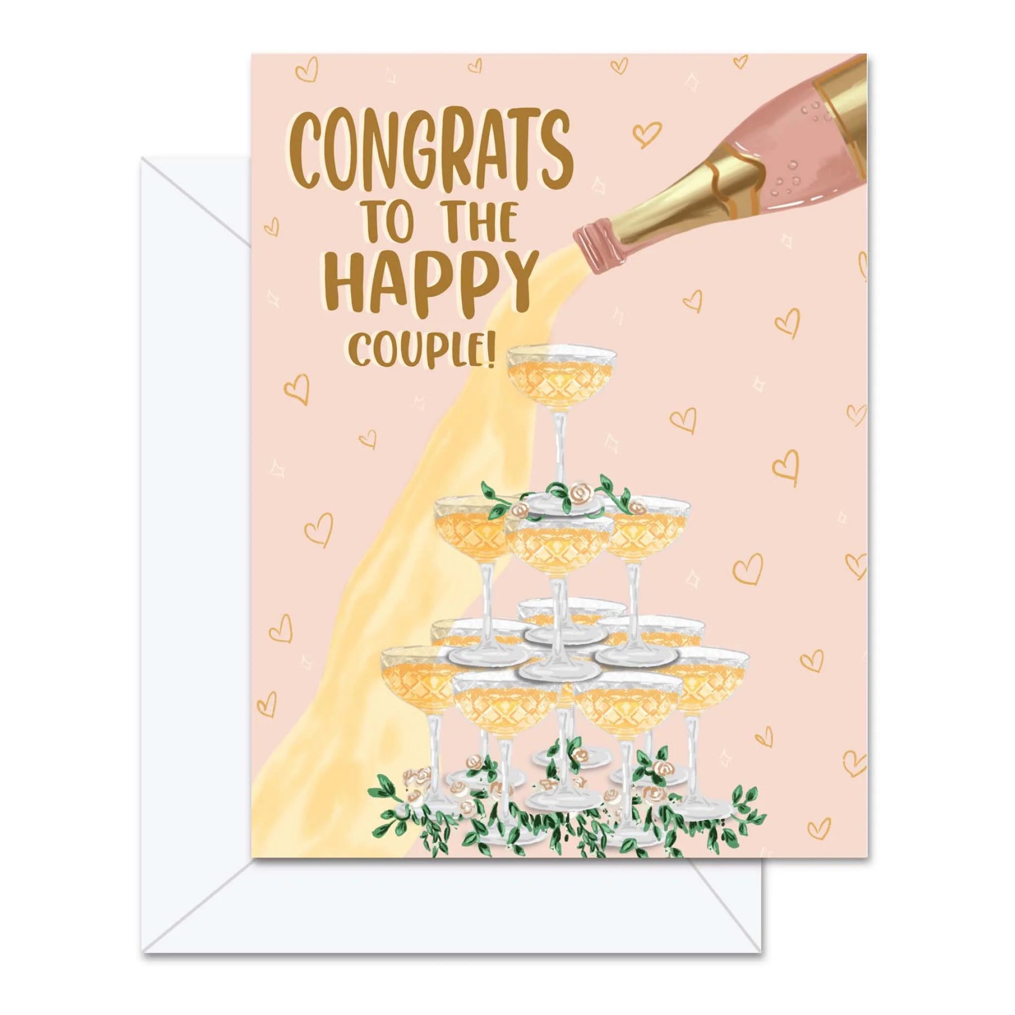 Pop the bubbly and celebrate love in style. This sparkling champagne tower card is perfect for toasting the happy couple.