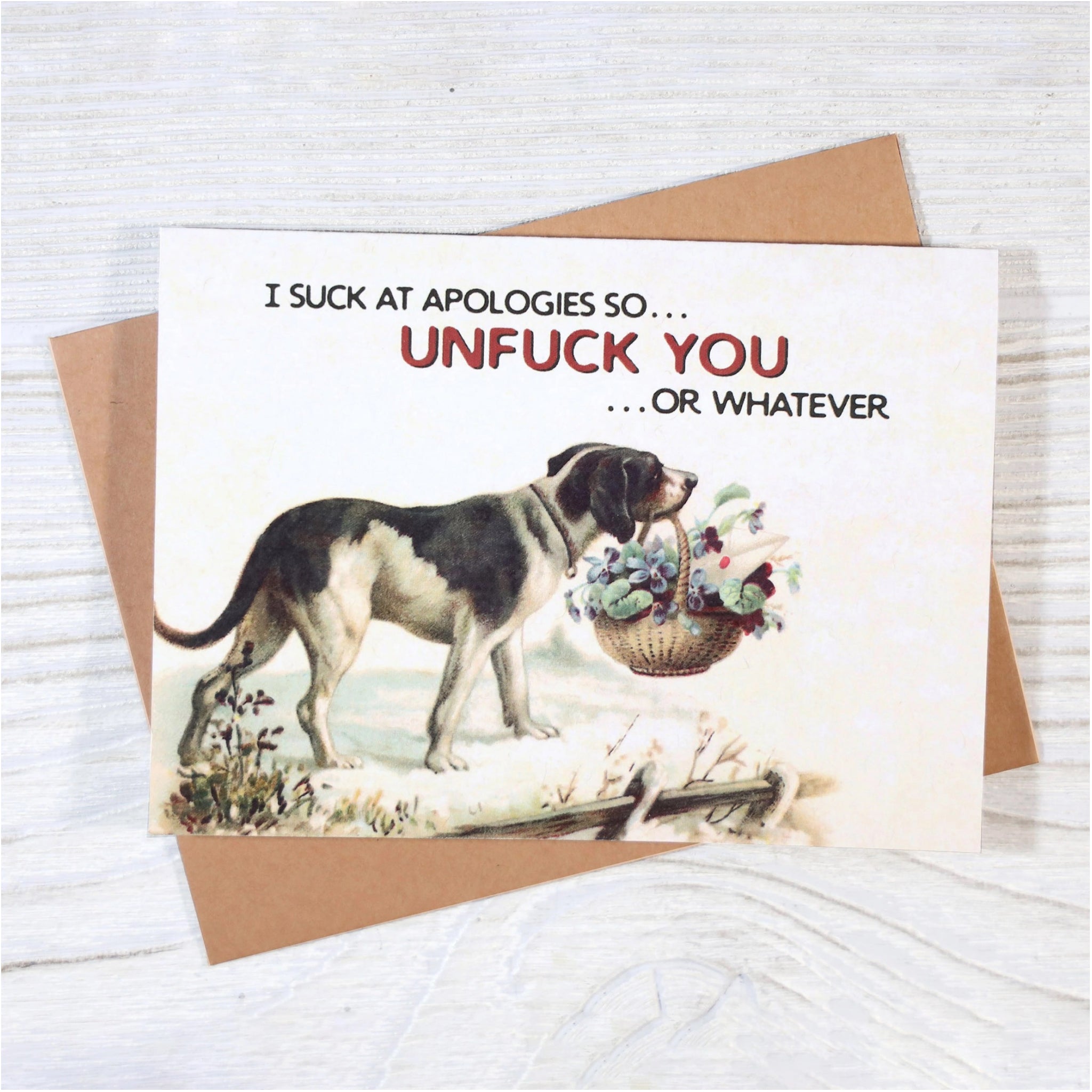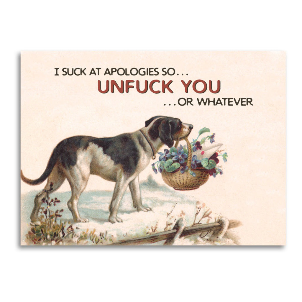 This vintage inspired apology card says sorry in the least graceful way possible. Perfect for making up with someone who appreciates blunt humour and a little awkward charm.