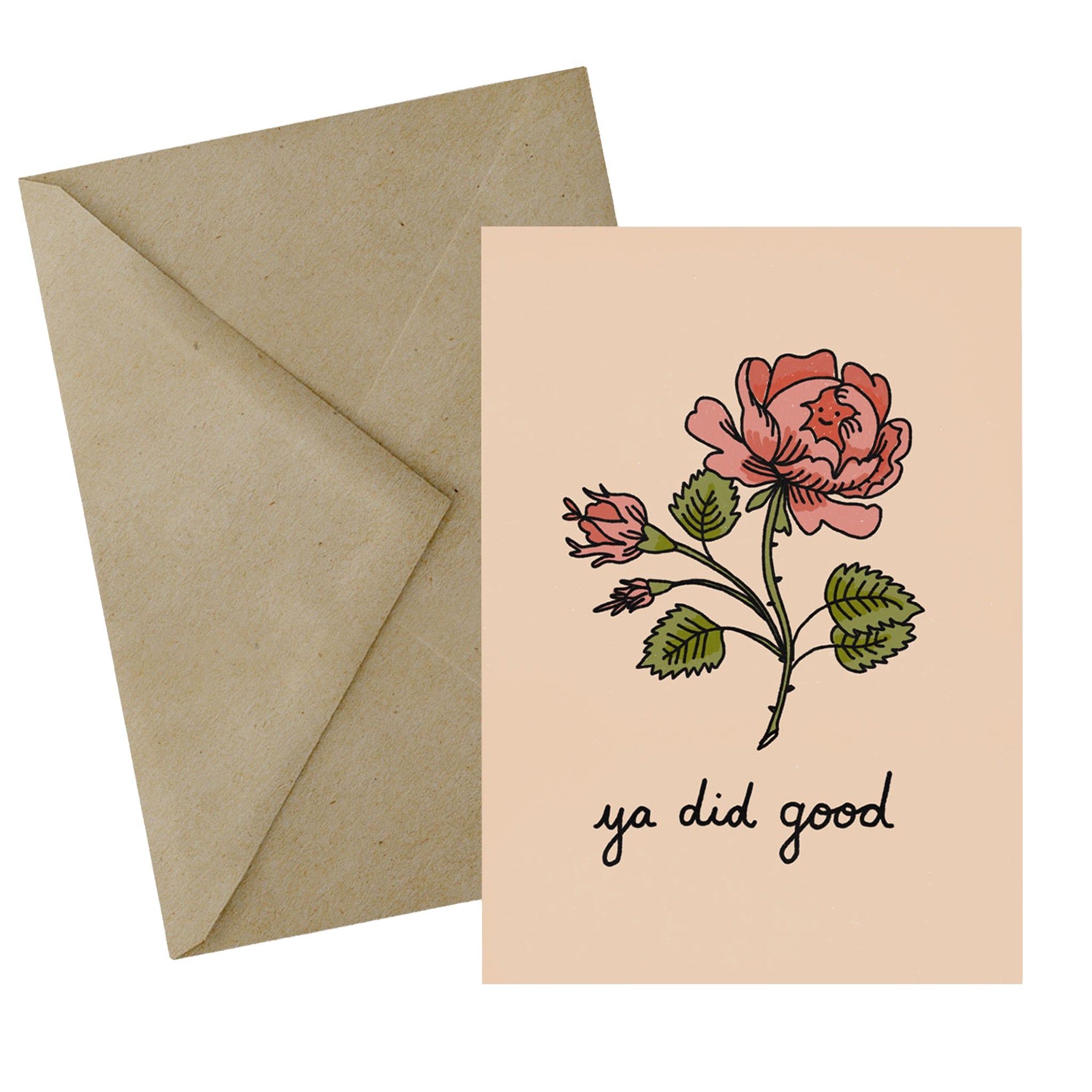A sweet congrats card featuring a simple floral illustration and the message “ya did good.” Perfect for cheering someone on after a big win or small victory.