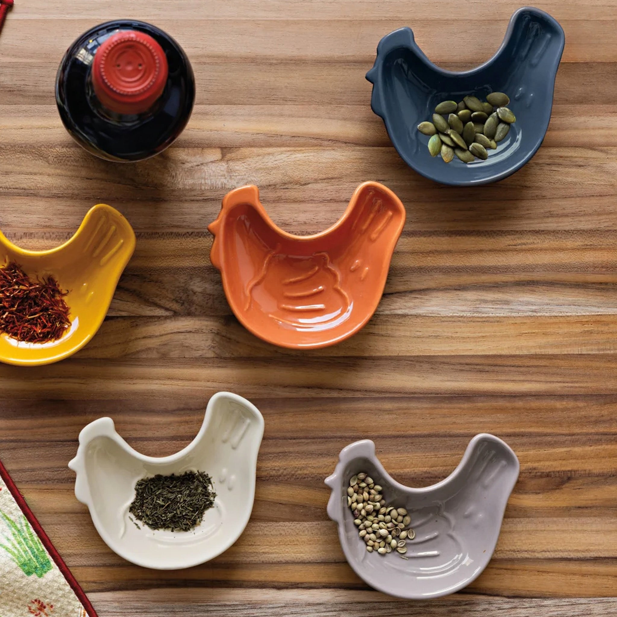 This Chickens pinch bowls set keeps spices, nuts, and herbs close at hand for easy cooking. Playful chicken shapes add farmhouse charm while helping season dishes with ease.