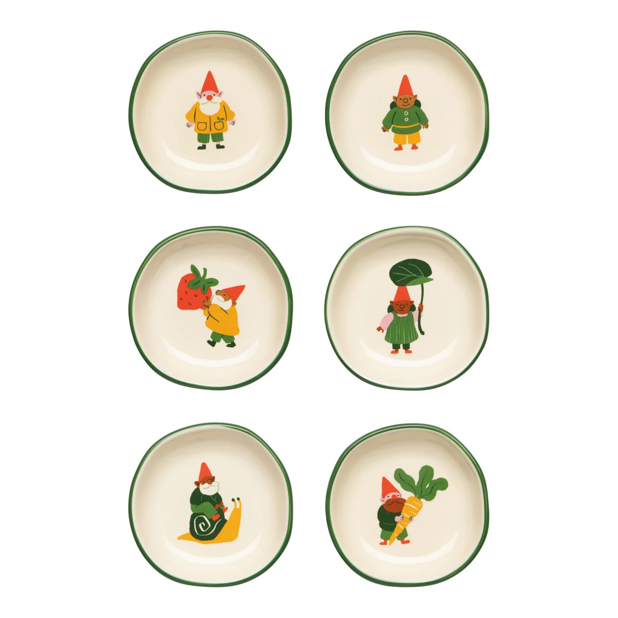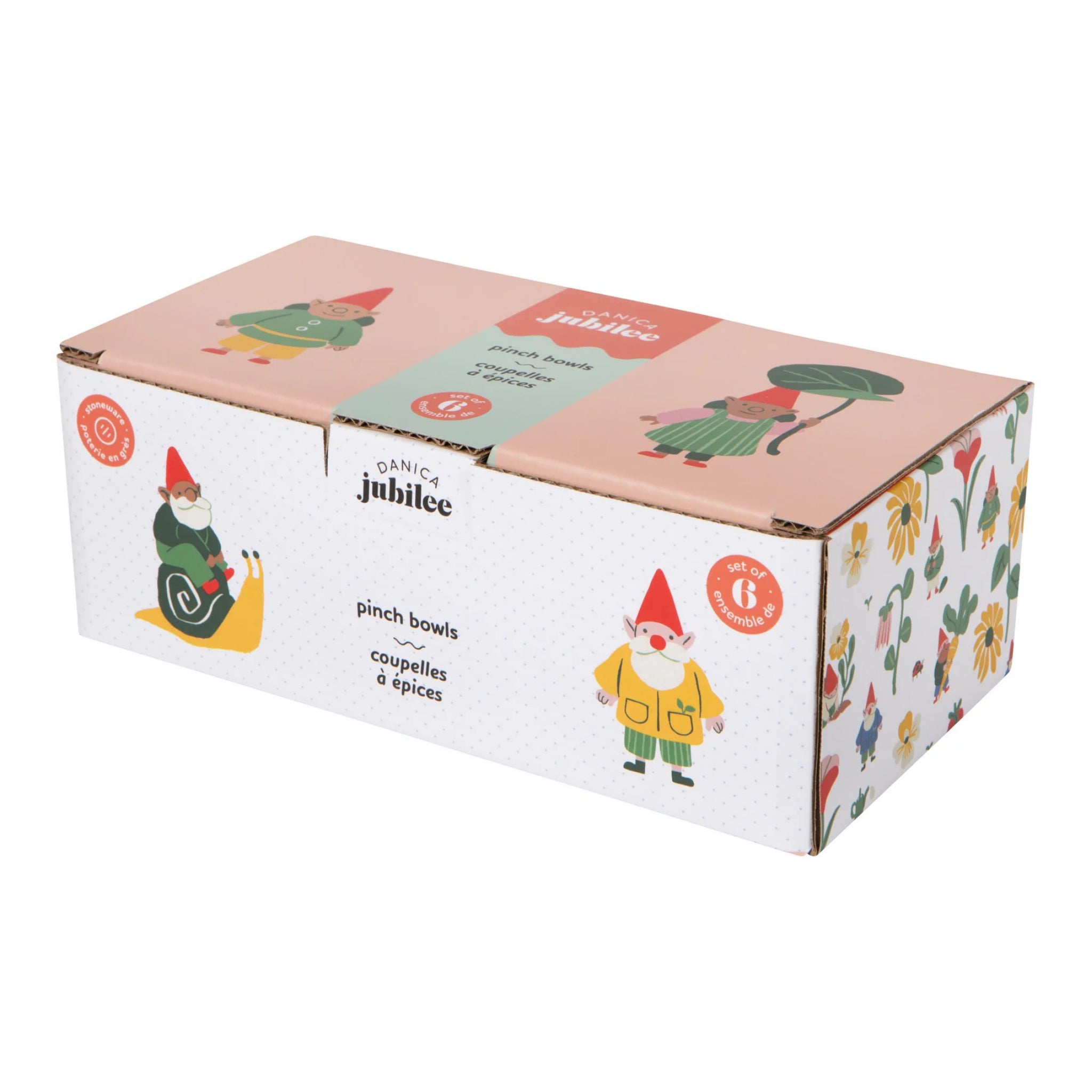 This Gnome Grown pinch bowls set keeps spices and seasonings close with playful garden charm. Red capped gnomes, busy snails, and bright blooms bring nostalgic storybook style to everyday cooking and baking.