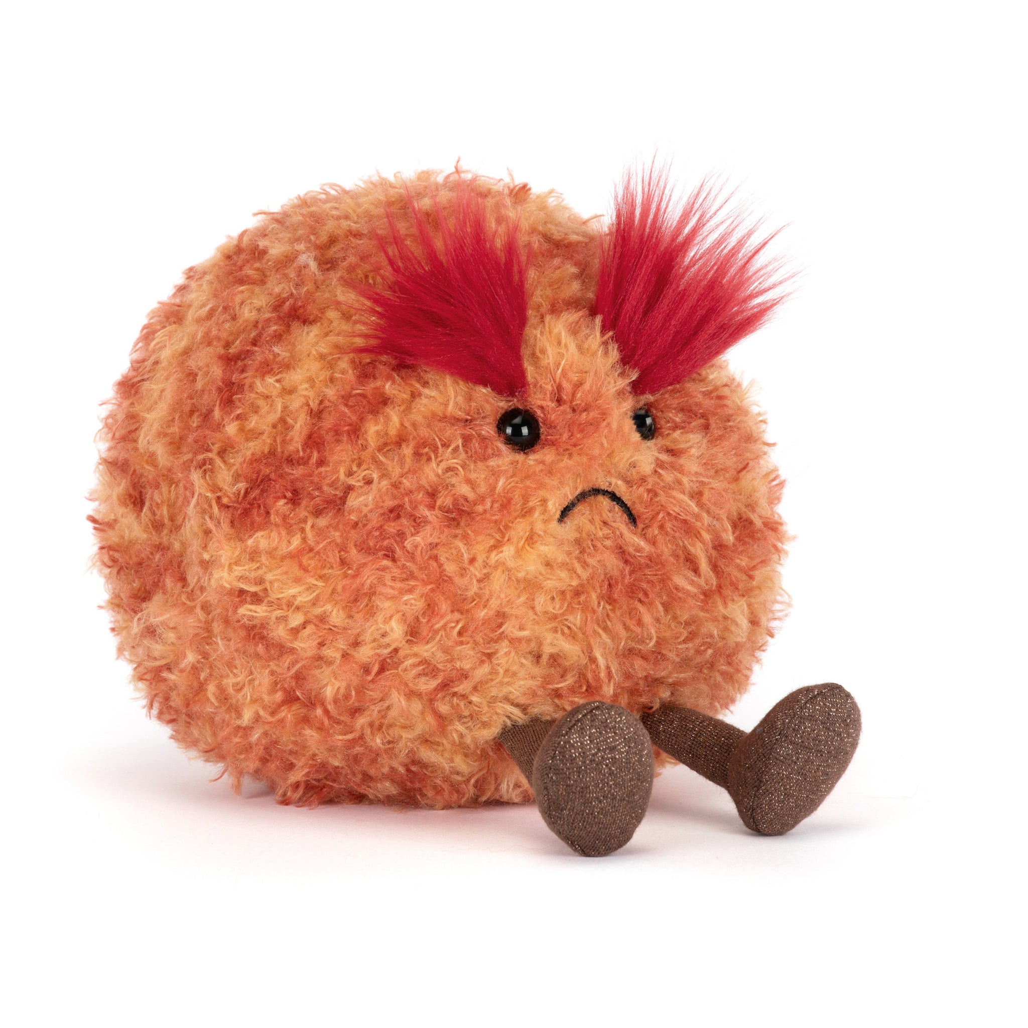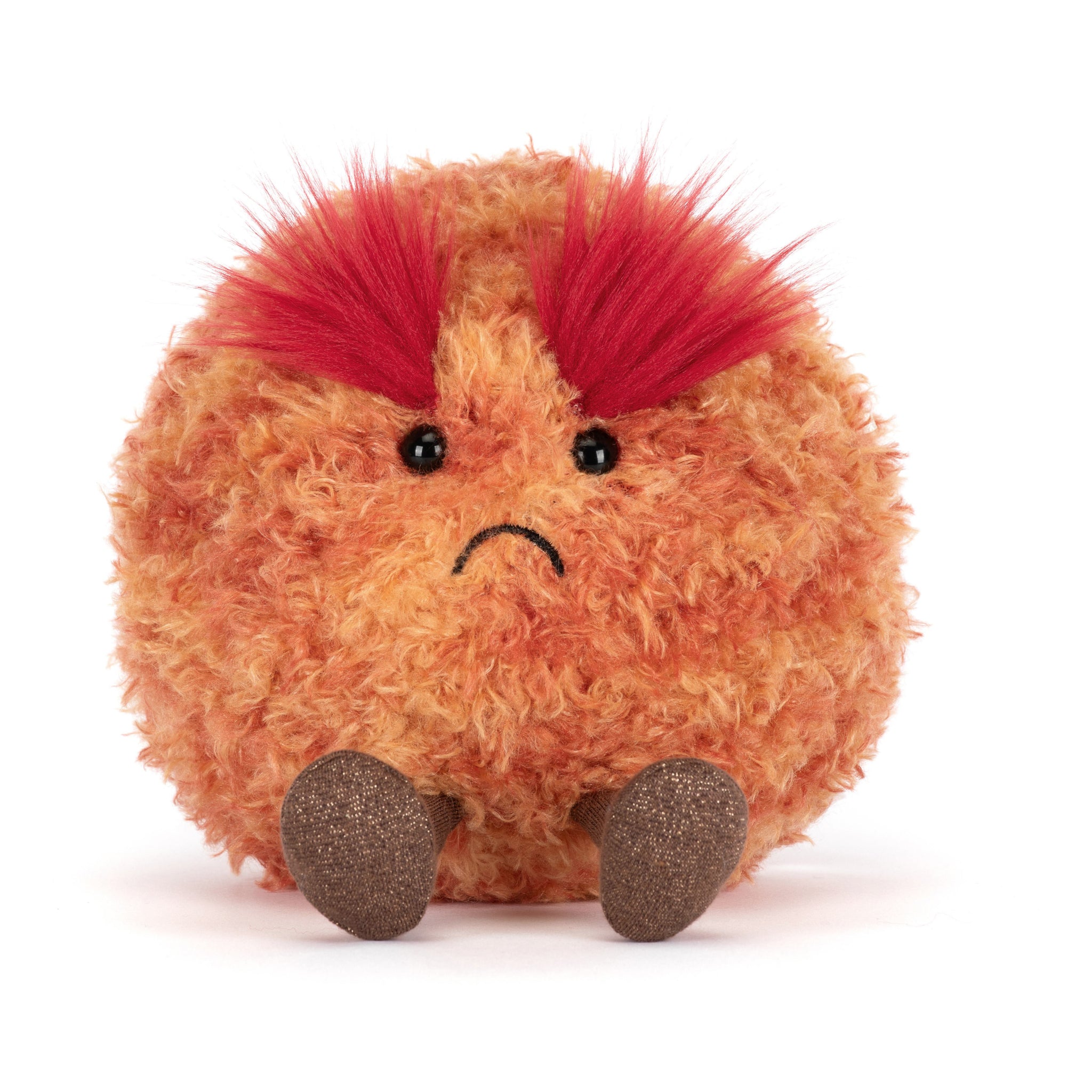 Jellycat Mars may look a little grumpy, but this fuzzy planet is a softie underneath those famously dramatic brows. With a fluffy round shape, a permanent frown, and plenty of personality, Jellycat Amuseables Planet Mars makes a funny and charming addition to any Jellycat collection.