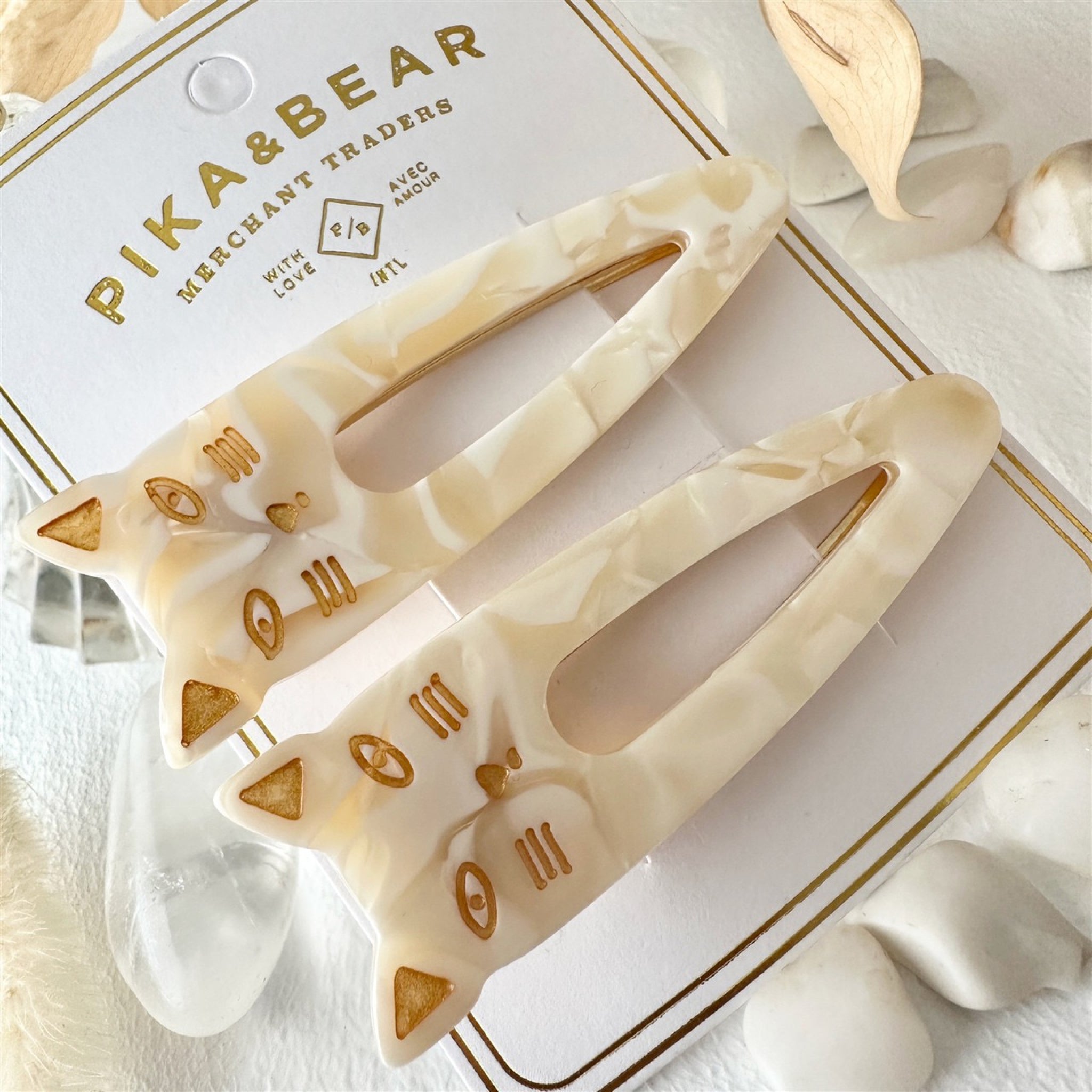 Cat face duckbill hair clips in pearl, perfect for pulling back bangs or adding a playful touch to up-dos with cute feline charm and function.
