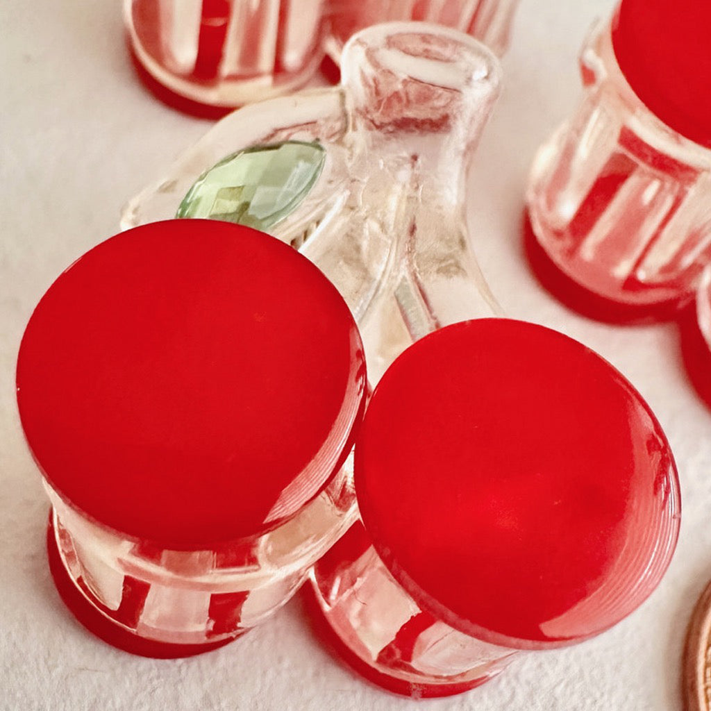 Mini cherry hair claw with a playful fruit-inspired design, a fun accessory that adds a pop of sweet style to any hairstyle.