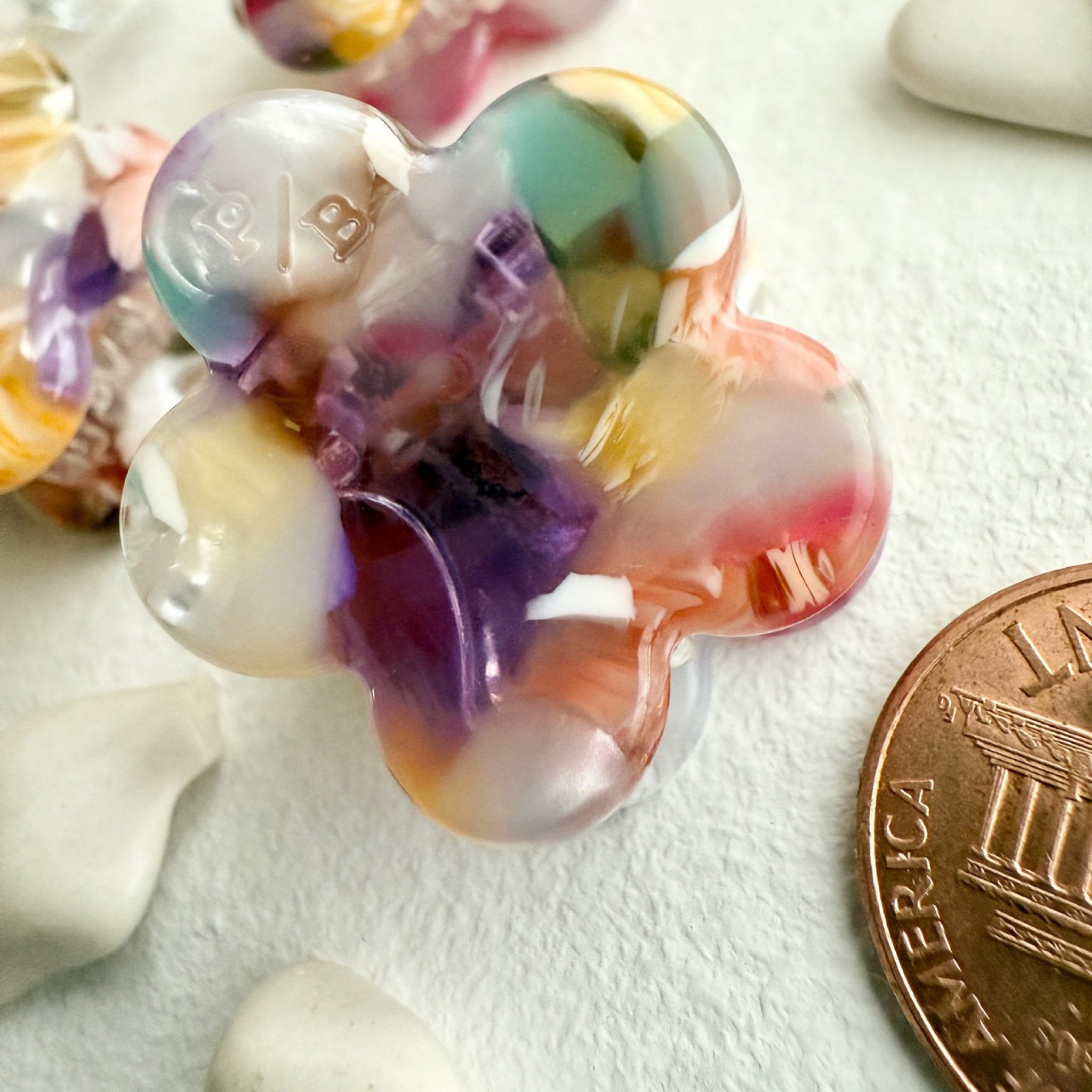 Mini flower hair claw in marbled multi-colours, a bright and playful clip that adds a pop of fun to buns, up-dos, or pulled-back styles.