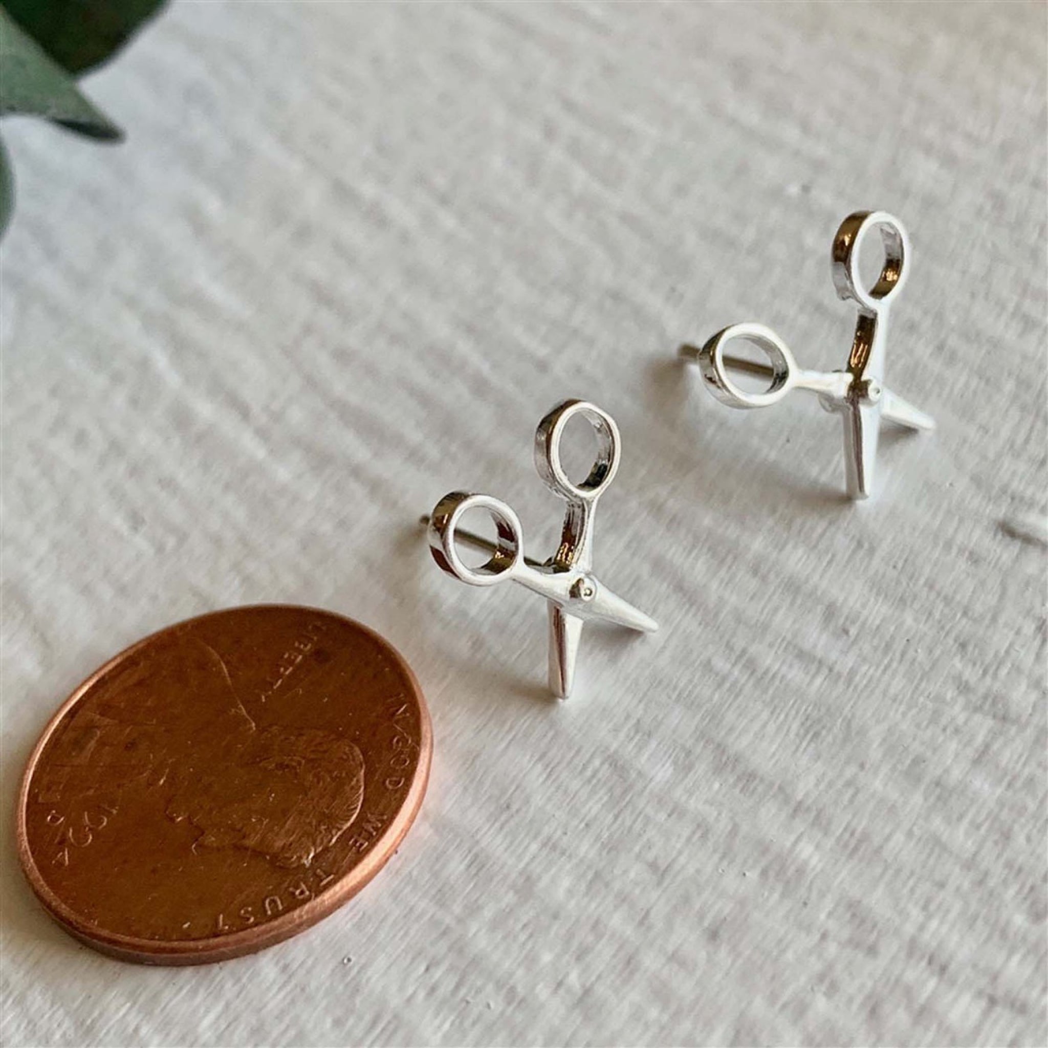 Add a playful twist with these silver scissor stud earrings, a quirky accessory that brings fun style and a hint of edge to any outfit.