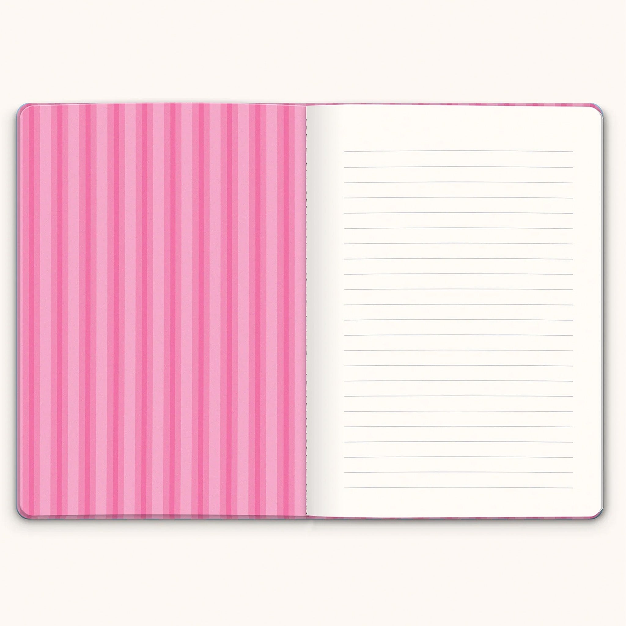 The Cotton Candy Stripes Keri notebook is a stylish companion for notes, journaling, and ideas on the go. With 208 lined pages of acid free paper and Smyth sewn binding, it opens flat for easy writing. Compact and portable, it’s perfect for everyday use or as a refill for the Keri notebook organizer.