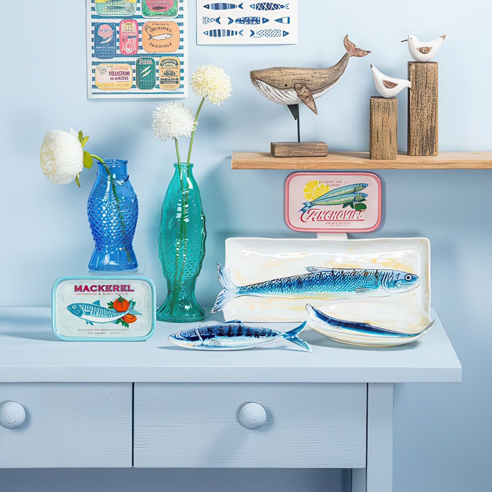This long slim fish dish adds an instant coastal touch to the table with blue and yellow detailing. Perfect for sushi, crackers, appetizers, or little snacks that deserve a special plate.