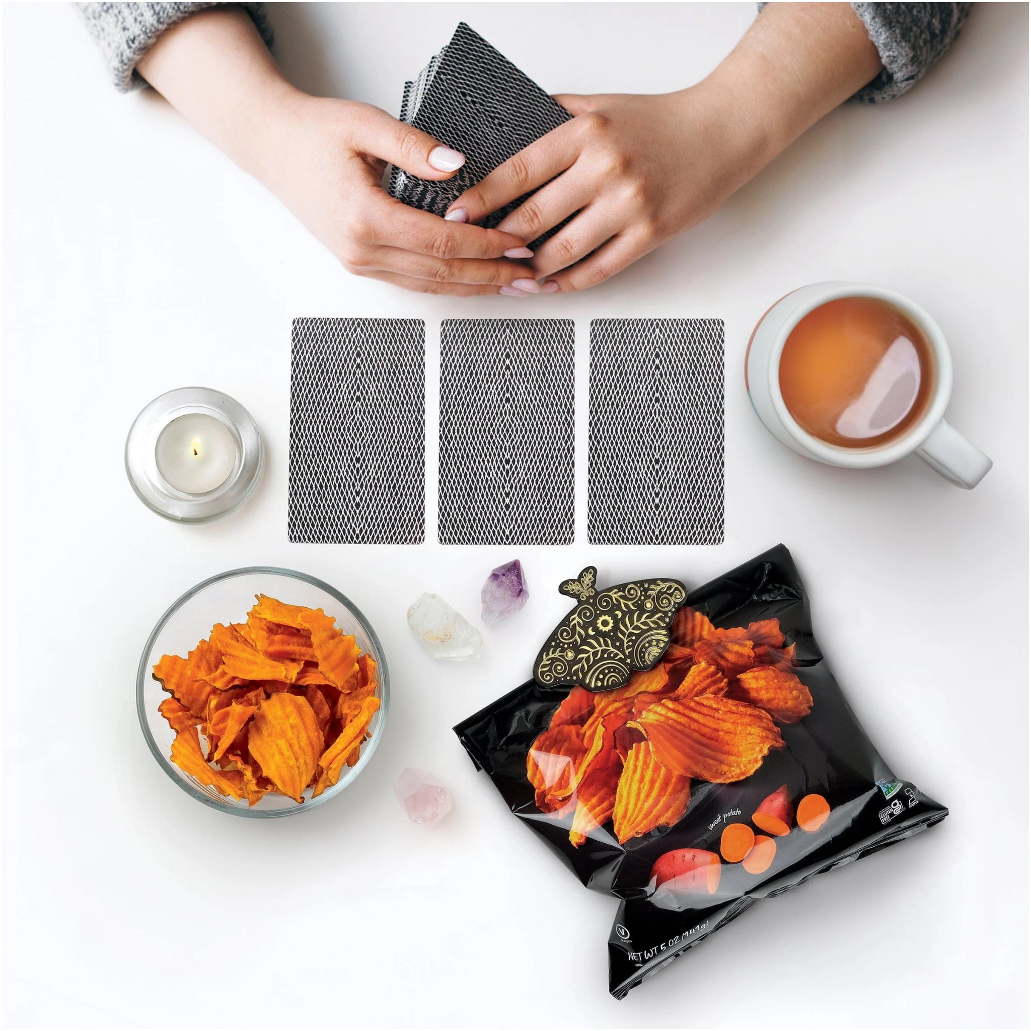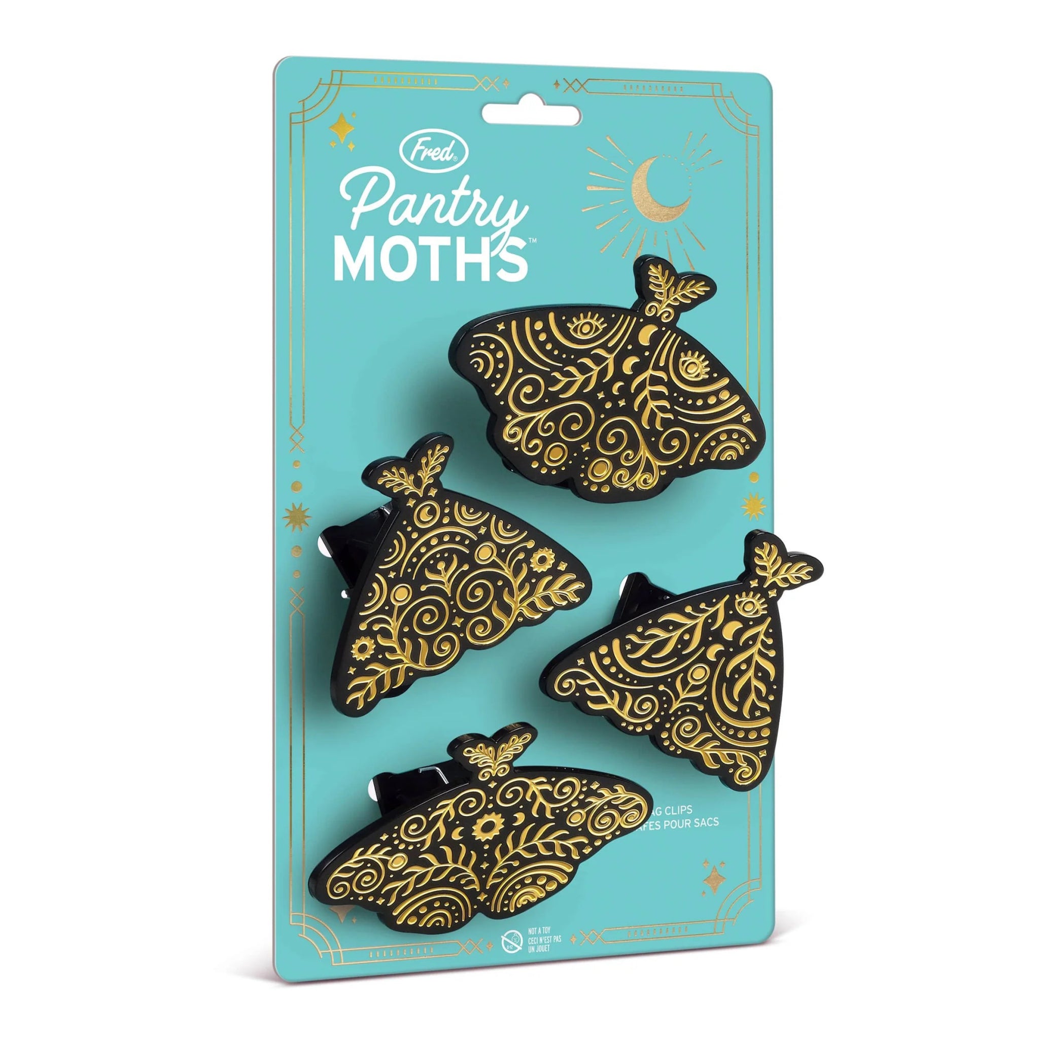 Fred’s Pantry Moths Bag Clips add a touch of magic to snack time. This set of four gold-detailed clips keeps food fresh and your pantry stylish. Made from durable ABS plastic with strong stainless steel springs, they seal tight while bringing celestial charm to your shelves. Perfect for gifting or everyday kitchen use.