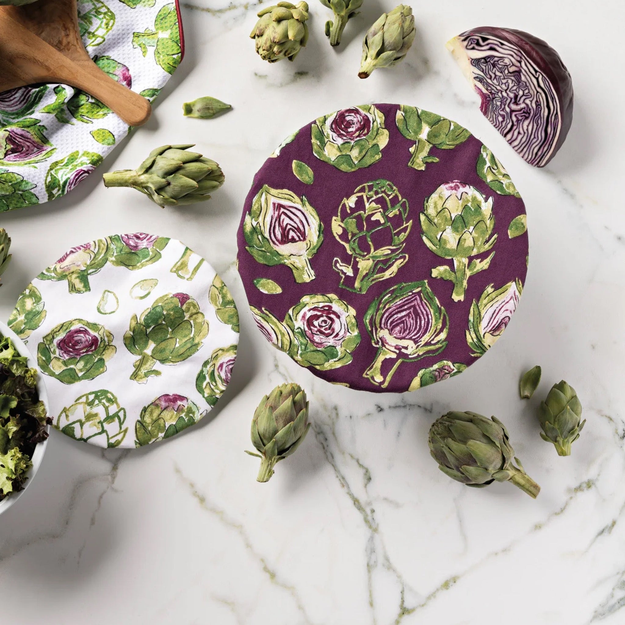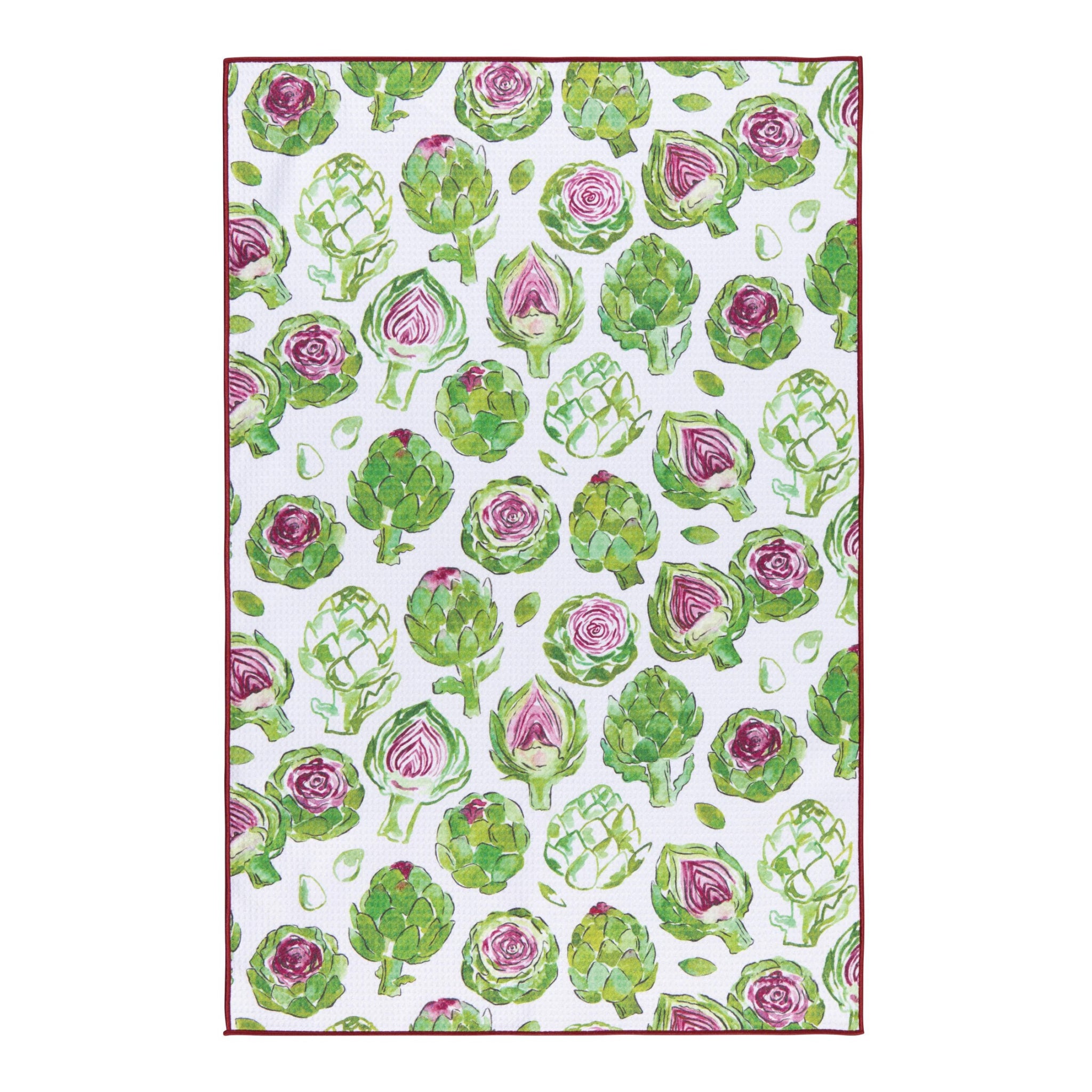 This Artichoke recycled microfibre dishtowel adds farm to table charm to everyday cleanup. Soft, versatile fabric features painterly artichokes in rich purples and greens for a gourmet kitchen touch.