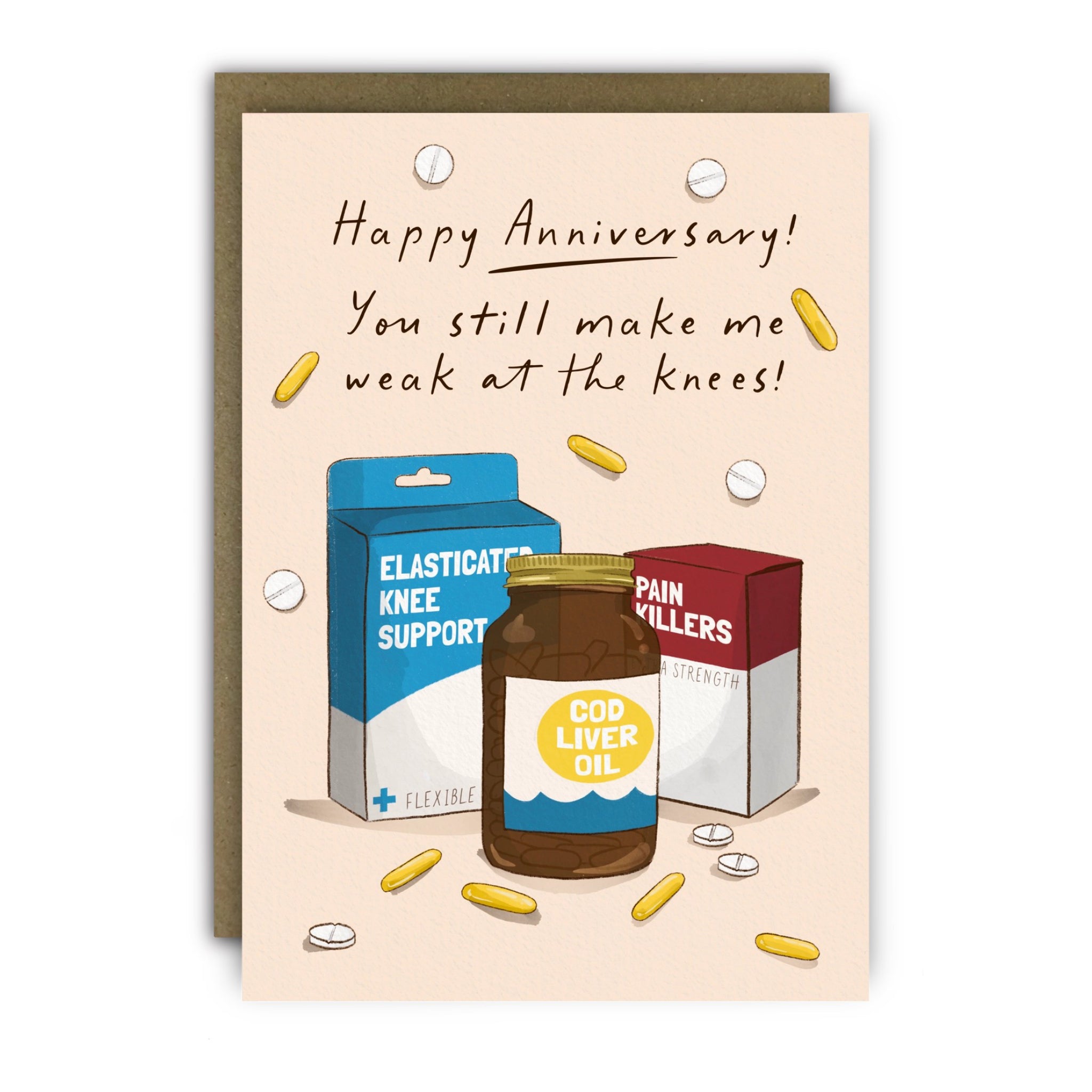 Knee Supports Anniversary Card with cheeky humour and playful charm, perfect for celebrating love that still makes you weak at the knees.
