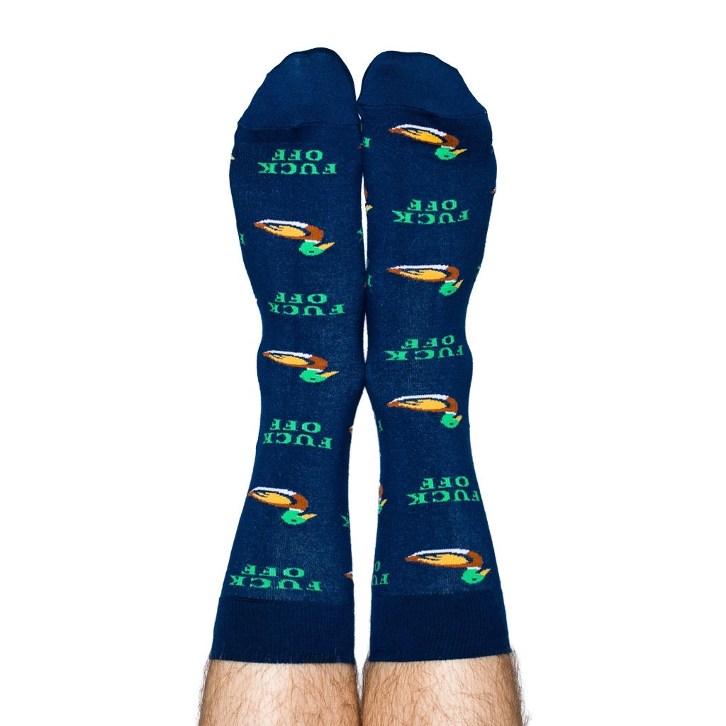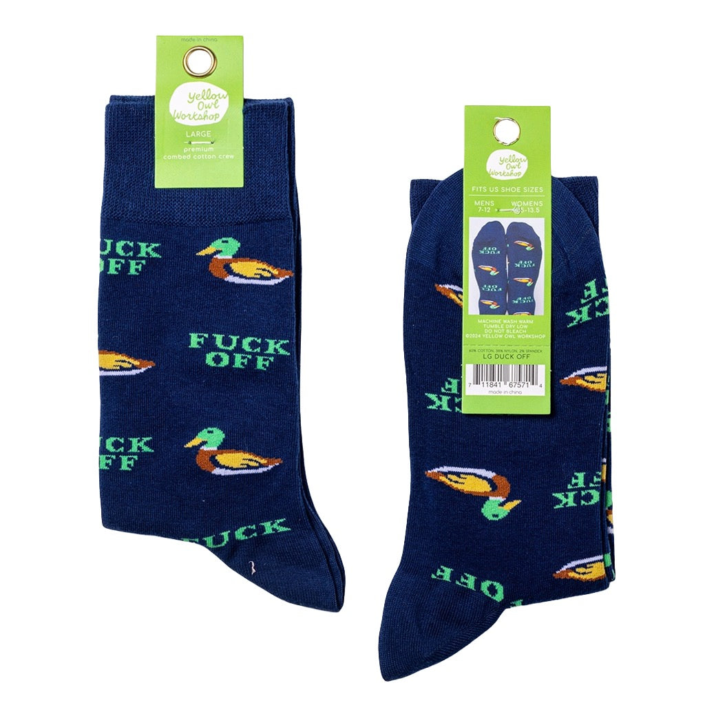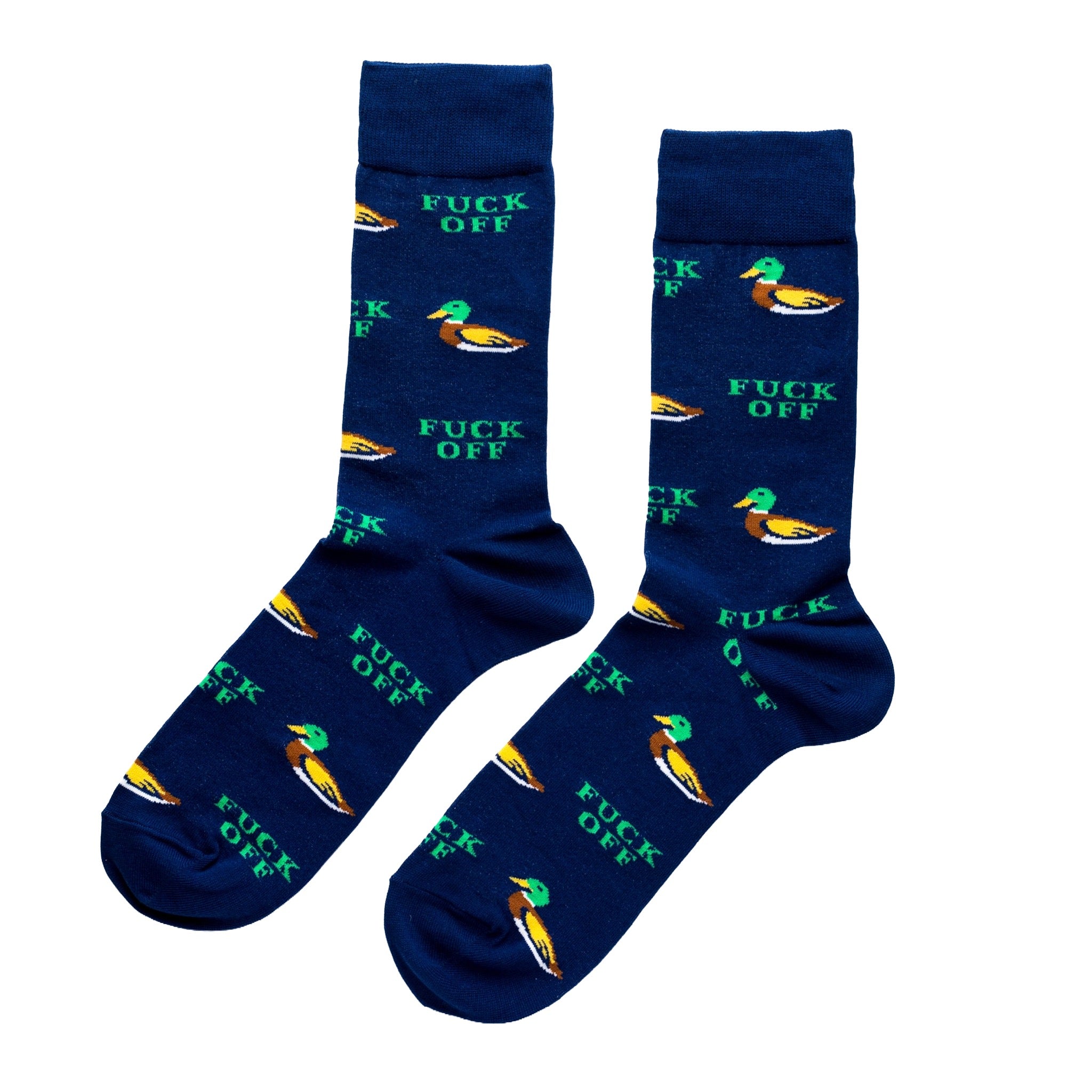 These cheeky crew socks feature mallard ducks and bold attitude, making them a hilarious gift with serious personality and everyday comfort.