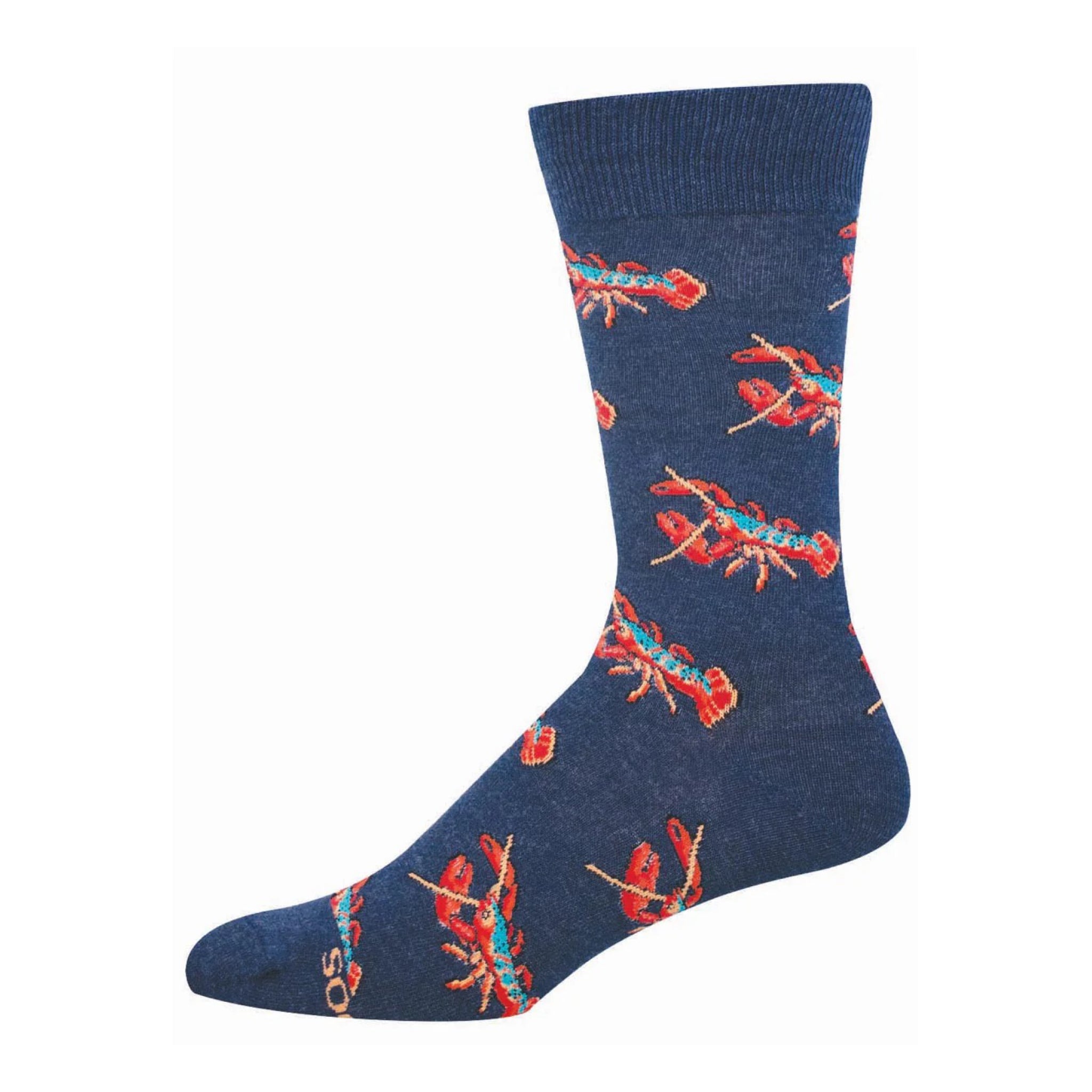 Add a little coastal charm to everyday outfits with navy heather crew socks covered in bright red lobsters. A playful nod to seaside vibes, seafood puns, and true Maine style.