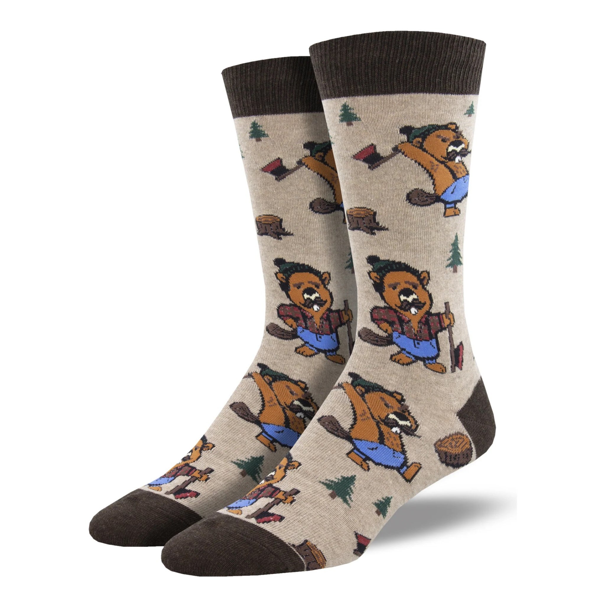Men’s Knotty Beaver Socks in hemp heather bring humor and comfort to your step with their cheeky, hardworking beaver design. Featuring a shirtless lumberjack beaver and a thoughtful wood-cutting philosopher beaver, these socks mix fun with function for anyone who loves clever style and cozy toes.