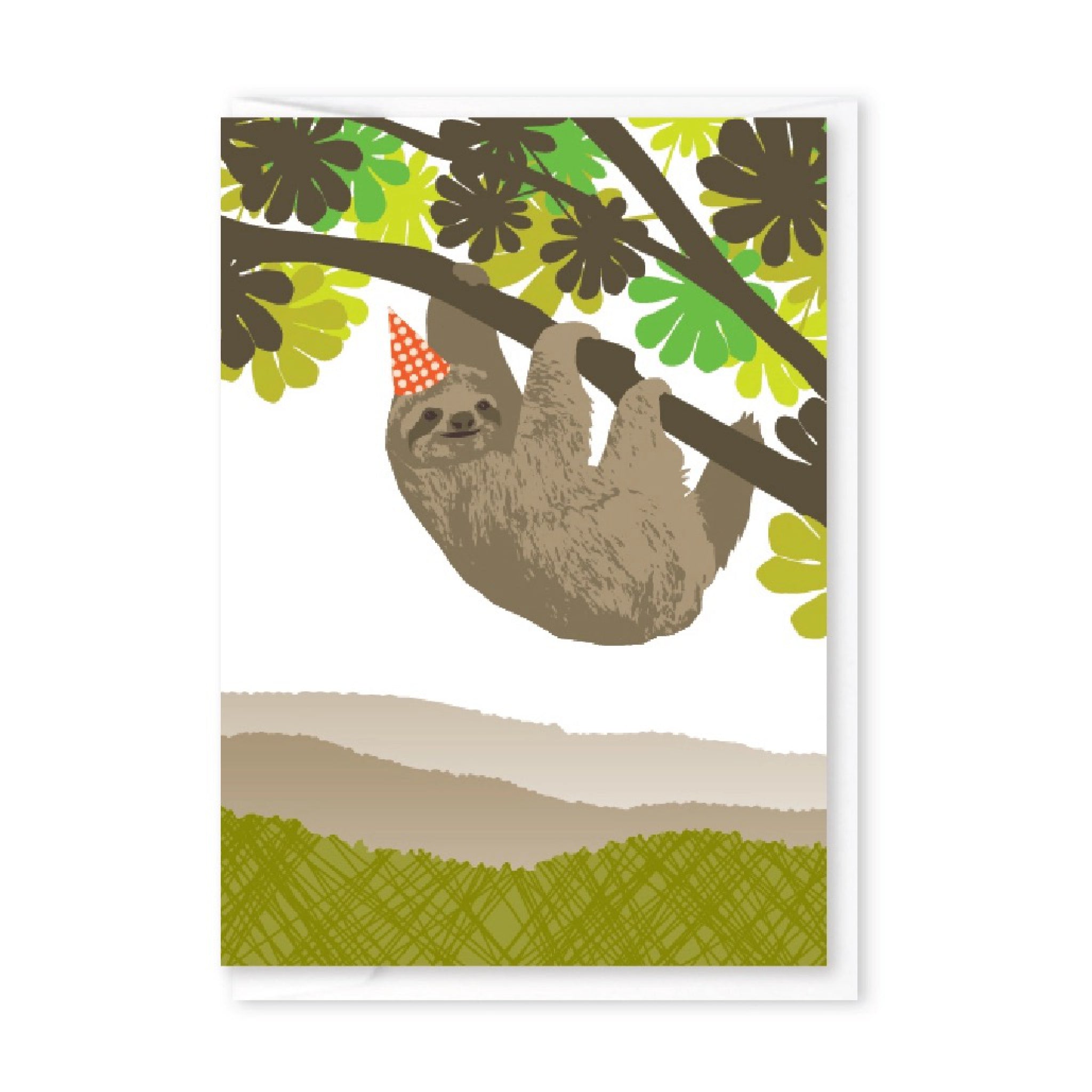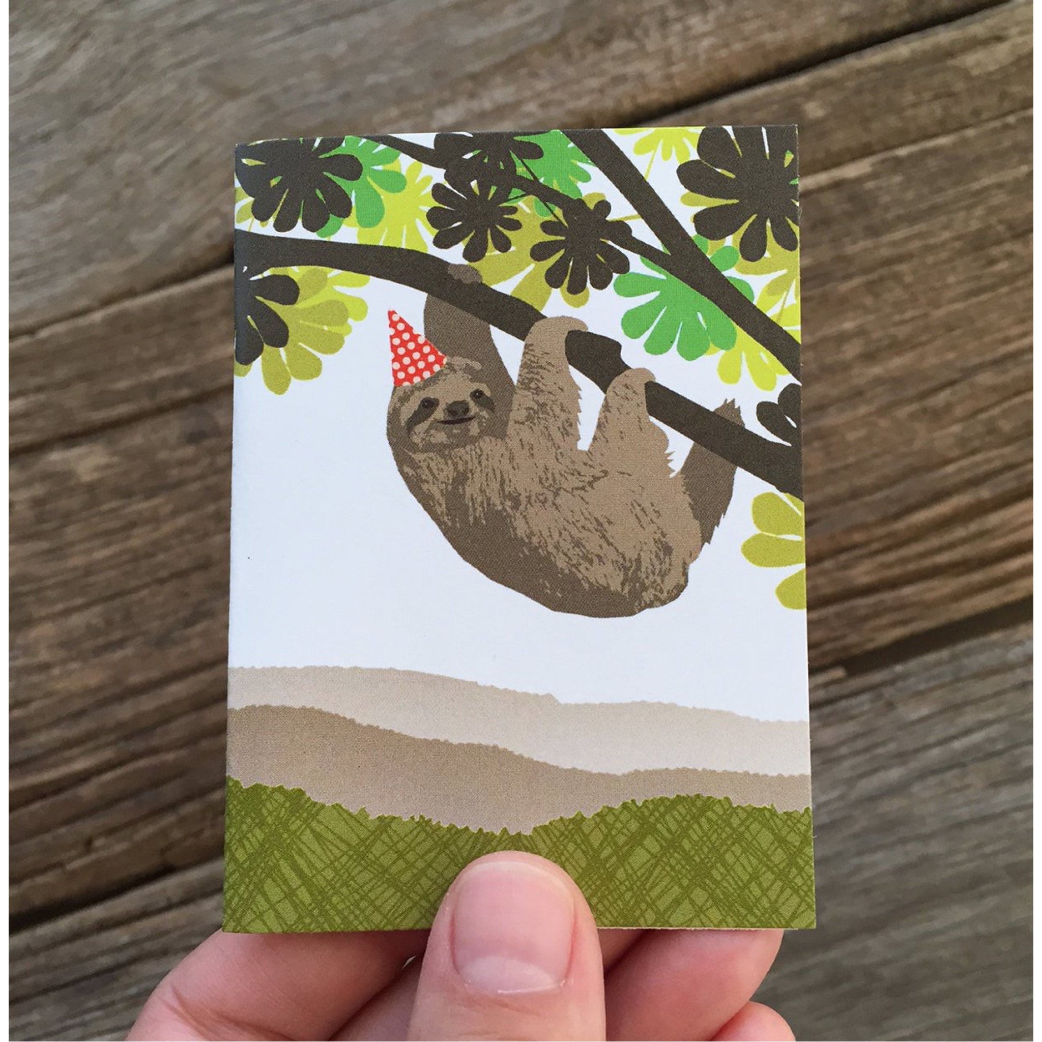 A mini enclosure card featuring a laid back sloth in a party hat, perfect for birthdays, gift add ons, and tiny notes that bring a smile.