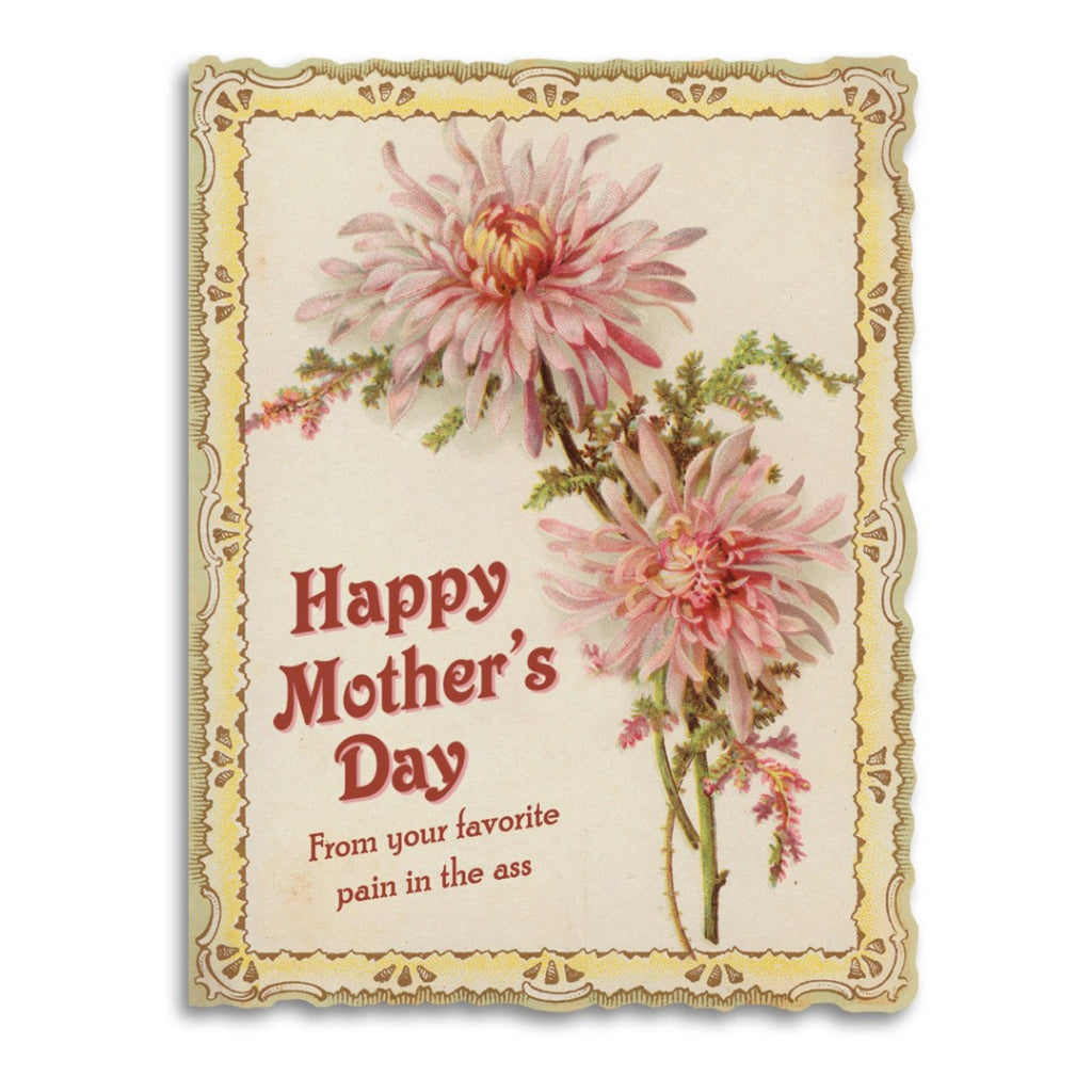 This cheeky Mother’s Day card pairs vintage florals with honest humour. A funny pick for moms who can laugh at being loved by a pain in the ass.