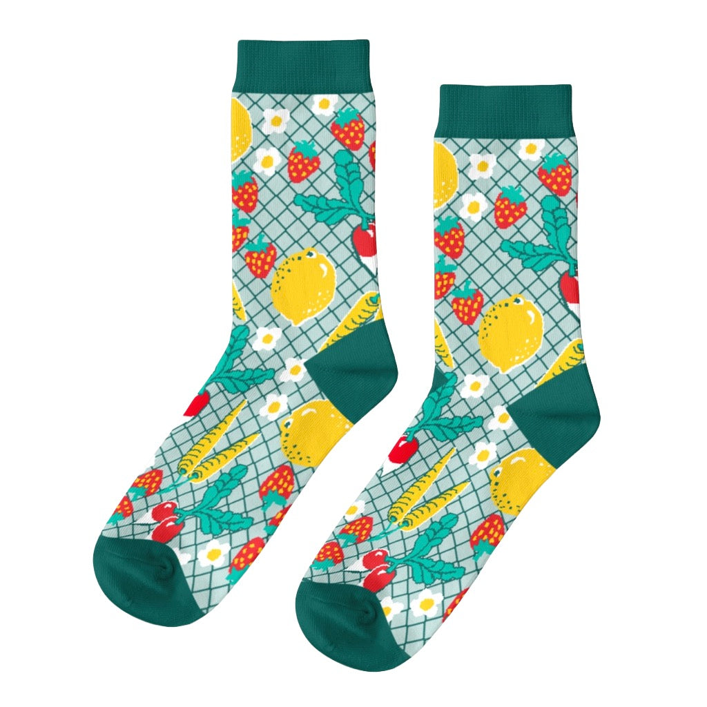Bring the farmer’s market to everyday outfits with these comfy crew socks. Premium combed cotton and bright produce inspired graphics make them an easy pick for foodies and gift giving.