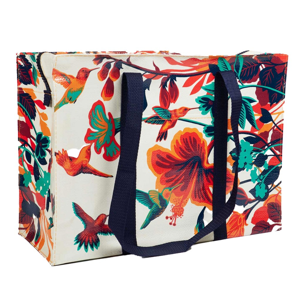A vibrant shoulder tote for groceries, books, or beach days. Perfect for hummingbird lovers and colorful adventures.