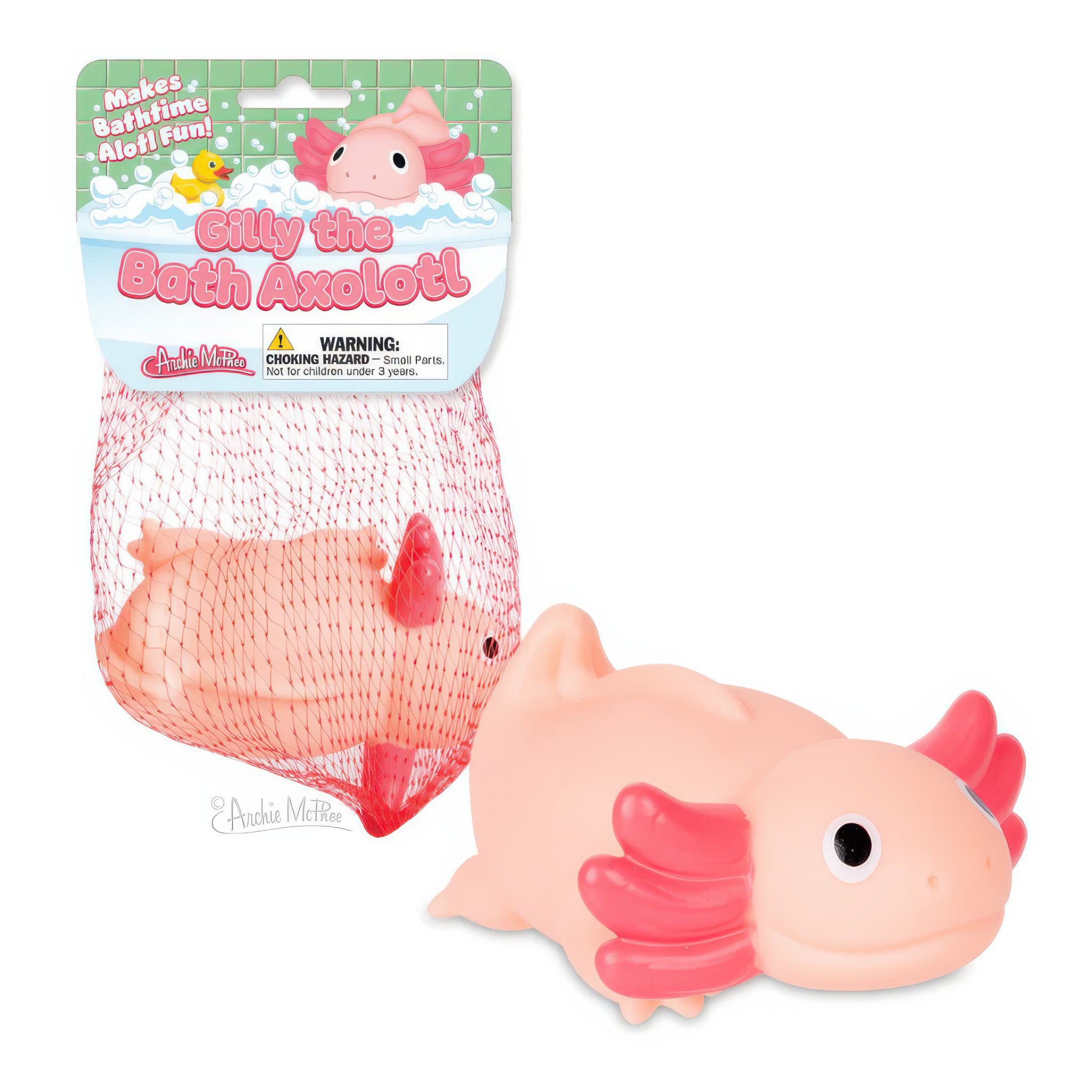 Bath Axolotl: Move over rubber ducky, Gilly the axolotl is here to charm your tub time. This pink soft vinyl pal floats, chills on a soap dish and is just glad you’re clean. Friendly, tidy and totally tub-ready.