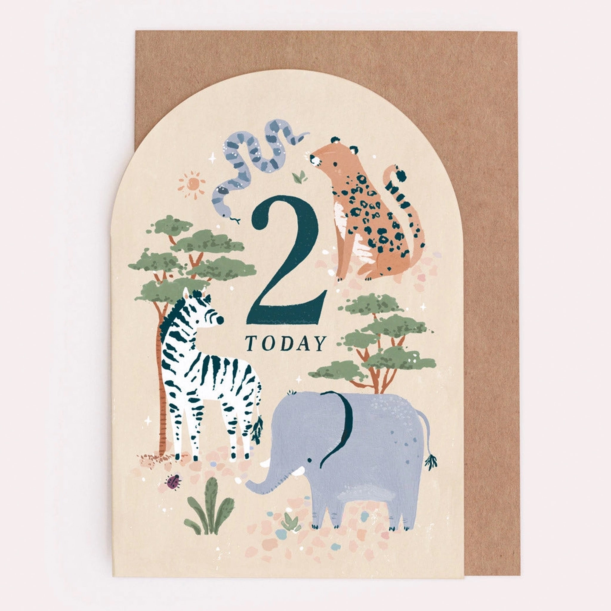 Age 2 Die-Cut Birthday Card with jungle animals and playful charm, perfect for celebrating their second birthday in wild style.