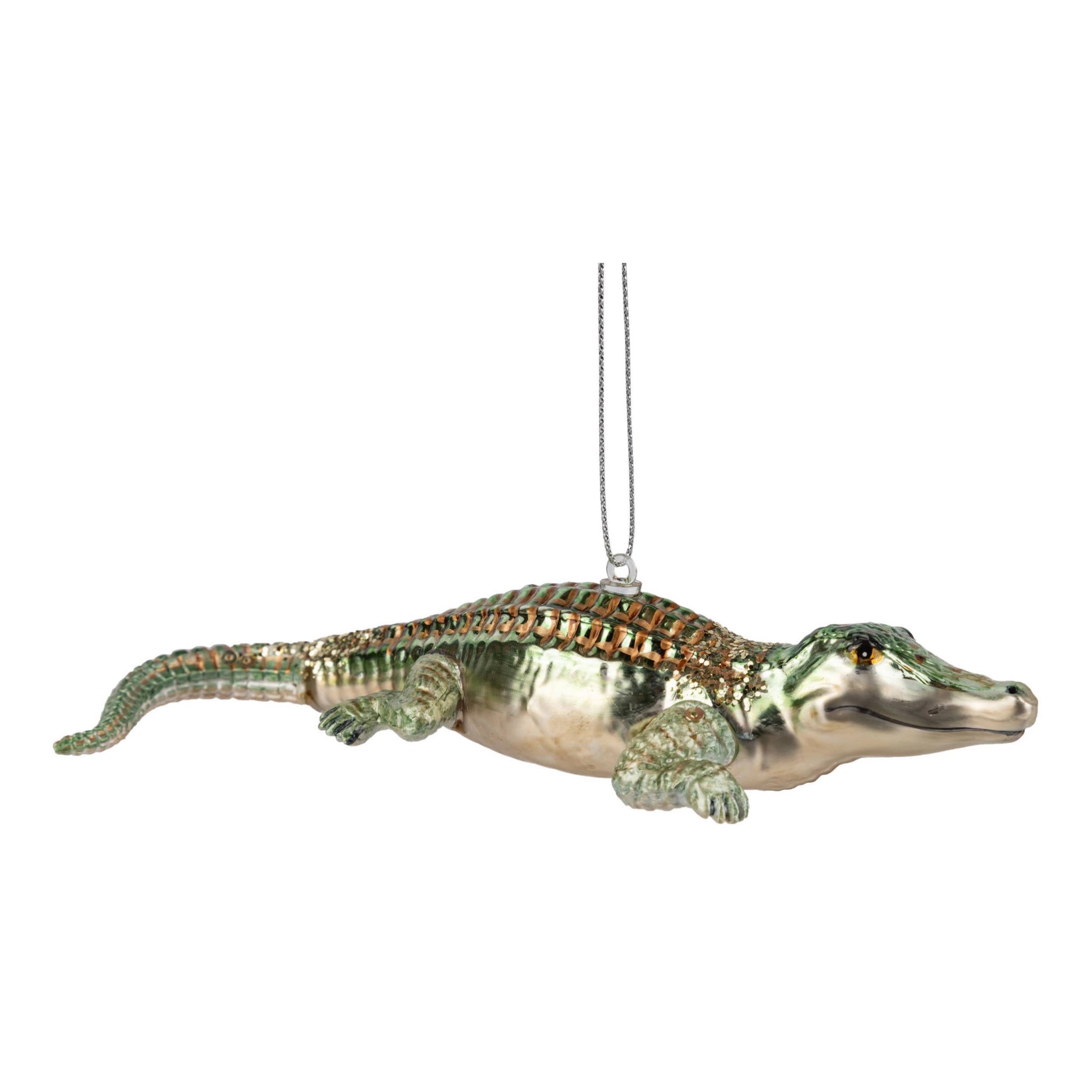 Glass alligator ornament adds wild charm and swampy fun, making a quirky holiday accent for Christmas tree décor.