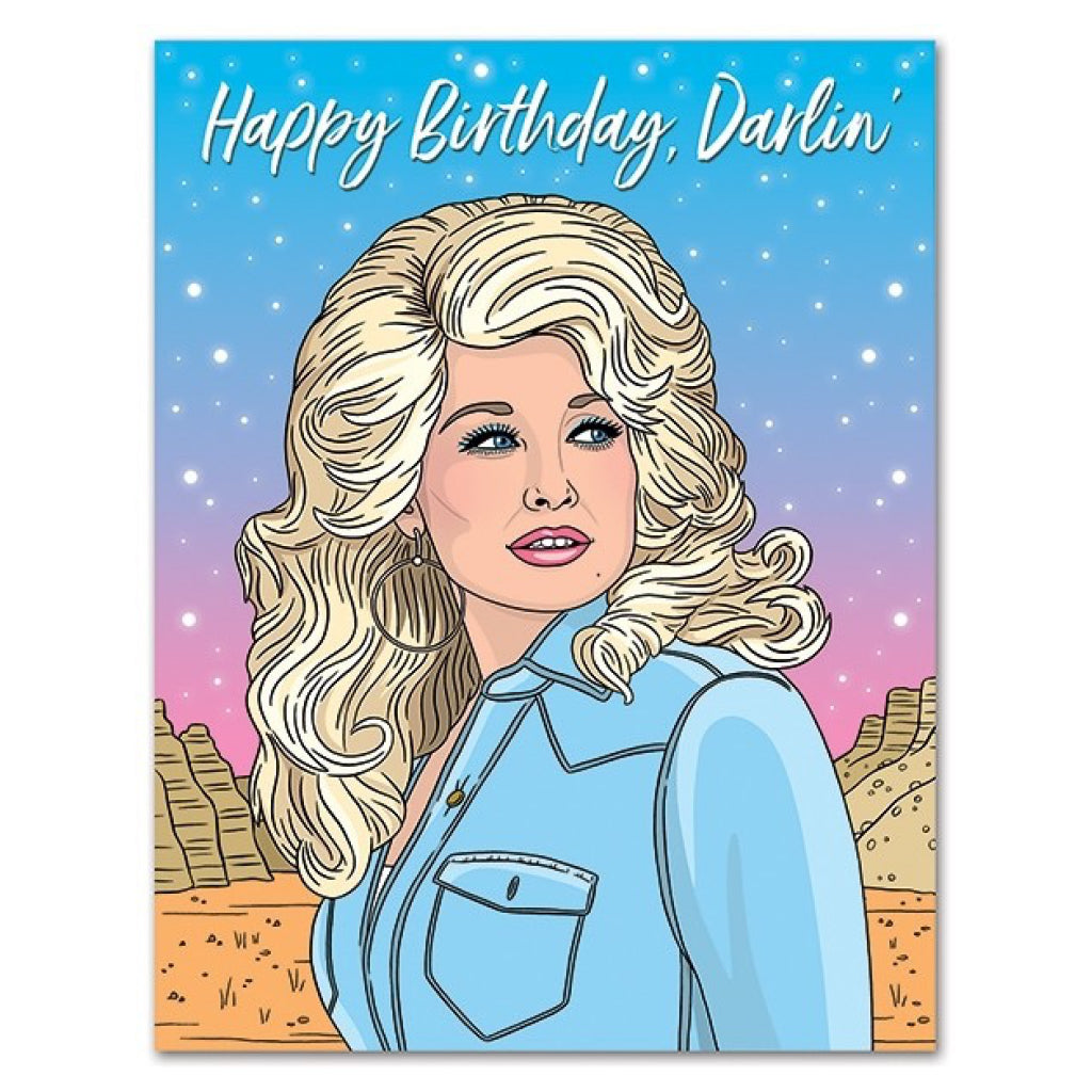 A birthday card featuring the one and only Dolly Parton.
